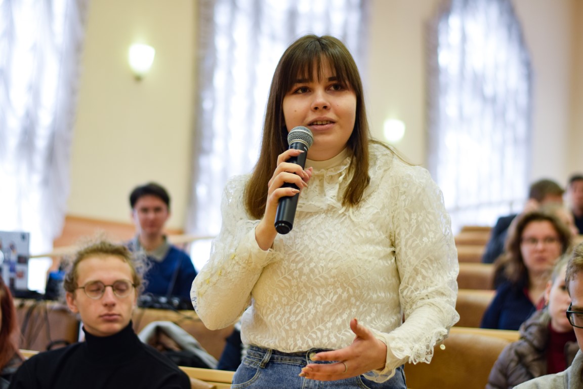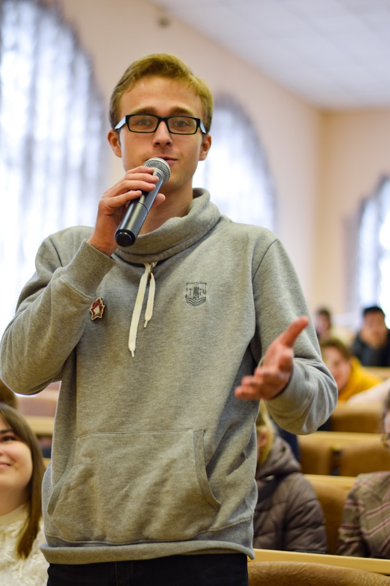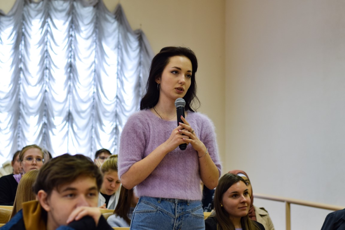 Затем настало время студенческих вопросов и предложений. Вопросы оказались самыми разными, порой весьма острыми: студенты-юристы активно интересовались технической оснащенностью аудиторией и возможностью ремонта своего учебного корпуса; многие студенты, как оказалось, плохо представляют себе возможности дополнительного образования в стенах ИвГУ (ректор подробно объяснил механизм подачи заявки и получения компенсации); конечно же, не обошлось без «вечных» вопросов о повышении стипендий, о переводе с платных мест на бюджетные; спрашивали о ситуации с коронавирусом в университете, о новых образовательных программах, о закупке техники для «Медиацентра» – и о многом другом. Ректор старался отвечать на каждый вопрос исчерпывающим образом, объясняя, что именно зависит от администрации вуза и может быть решено в рабочем порядке, а что – от выделения федерального финансирования (например, ремонт и перепрофилирование корпусов).