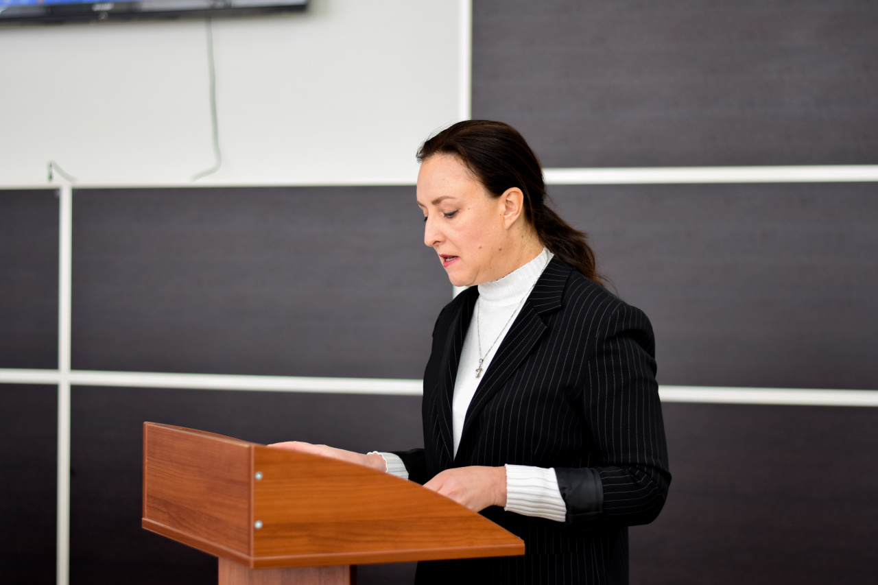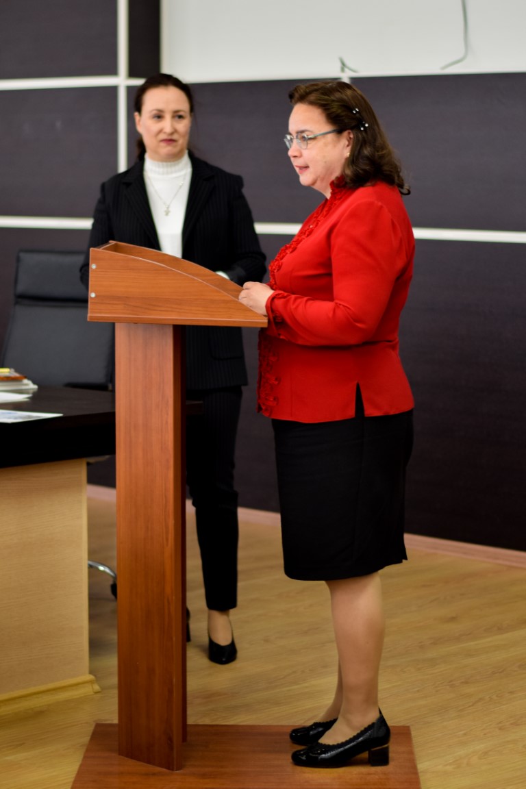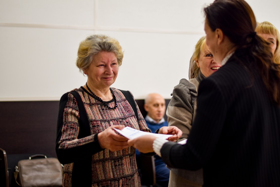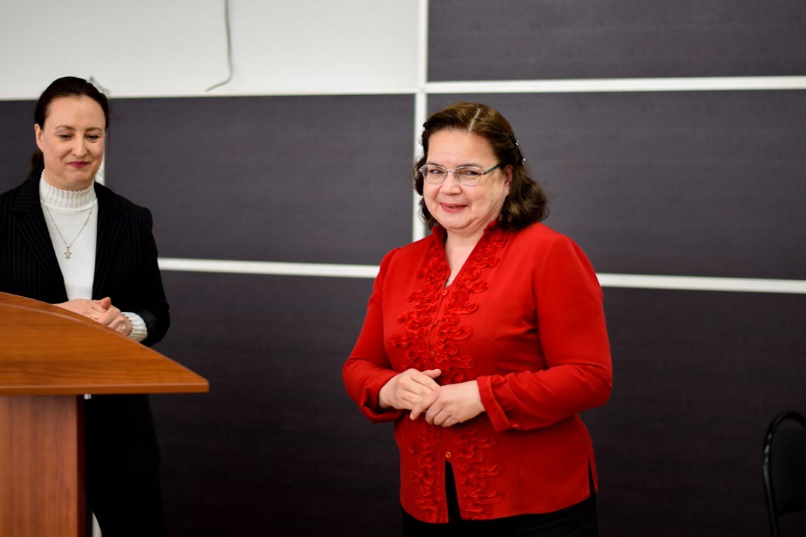 Далее ведущая мероприятия Ирина Александровна Ибрагим, заведующая Центром русистики и международного образования, кратко напомнив историю кафедры и отметив выдающуюся роль ее идейного вдохновителя и первой заведующей профессора И.Д. Морозовой, предоставила слово ее дочери Елене Николаевне Барановой – выпускнице ИвГУ, а ныне канд. фил. наук, доценту НГТУ им. Р. Алексеева (Нижний Новгород). Елена Николаевна отметила, что для нее «честь и радость» выступить на конференции в родном вузе, и сказала, что юбилейное мероприятие – это «проверка культуры памяти», когда мы вспоминаем своих учителей и то, чем они нас наделили. Прекрасно, что ИвГУ умеет хранить свои традиции, и эта новая площадка встречи русистов, встречи единомышленников, без сомнения, станет местом плодотворной работы. Е.Н. Баранова пожелала своим ивановским коллегам успехов и процветания, а И.А. Ибрагим вручила ей Благодарность от Центра русистики и международного образования.