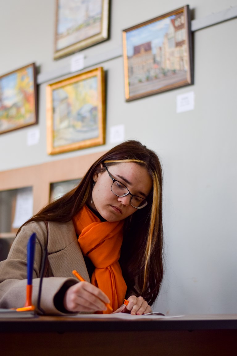 А остальное о своем творчестве и его связи с внутренним миром человека рассказала сама художница – недаром она еще и преподаватель-психолог. Больше всего Елену вдохновляют сюжеты и пейзажи, которые она замечает во время путешествий, и красота «простого момента», выхваченного, например, по дороге на работу. Среди стилей художница чаще всего выбирает реализм с элементами импрессионизма. Е.И. Сушкова подчеркнула, что не мыслит свою художественную деятельность и работу психологом как что-то отдельное друг от друга. Эти сферы жизни находятся в постоянном симбиозе, отношениях взаимообогащения и общения, и поэтому художница попросила многочисленных зрителей во время просмотра экспозиции принять участие в «художественном психотренинге», запечатлев свое восприятие в небольшой анкете.