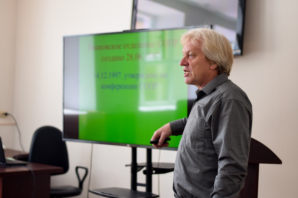 Затем В.Н. Мельников выступил с масштабной презентацией, посвященной насыщенной истории отделения, одного из самых активных в СОПР. С 1997 года отделение вело и ведет широкий спектр научных исследований: изучение дневных хищных птиц, сов, куликов, журавлей; изучение динамики населения птиц на преобразованных человеком и впоследствии заброшенных территориях; работа по программе «Атлас гнездящихся птиц Европы»; обследование орнитологической обстановки Ивановского аэропорта – и мн. др. Члены Ивановского отделения принимали участие в орнитологических экспедициях на Чукотку, Камчатку, Ямал, Таймыр, Кавказ, участвуют в целом спектре международных и российских научных и природоохранных проектов. Нельзя не отметить активную просветительскую деятельность: организуется целый комплекс мероприятий, конкурсов и проектов («Покормите птиц», «Соловьиные вечера», «Серая шейка» – и др).