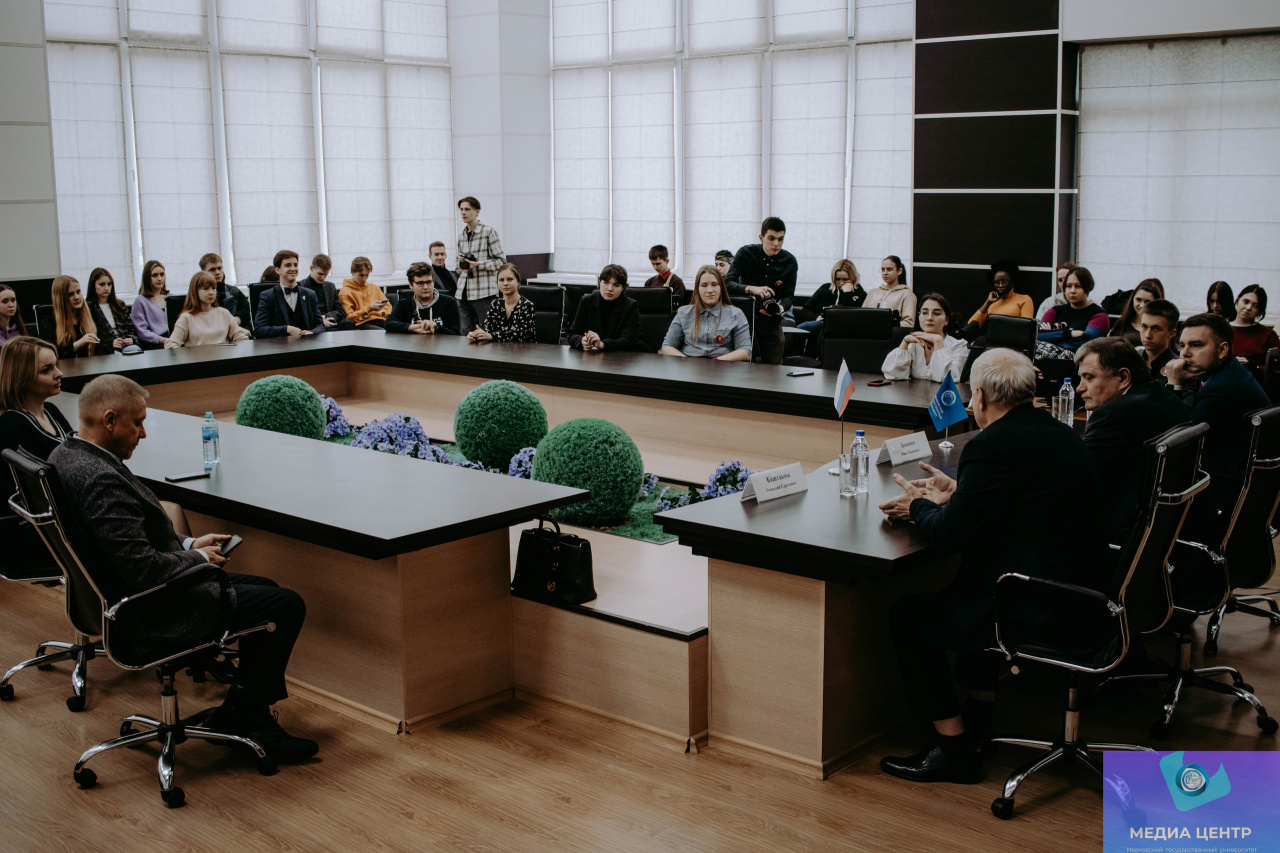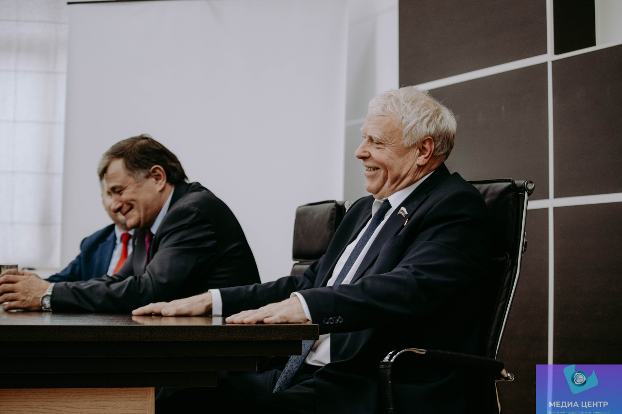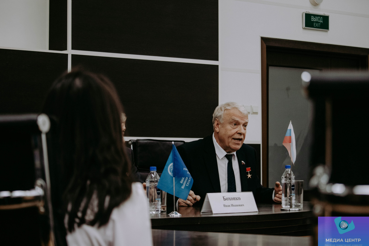 2 ноября в конференц-зале 6-го учебного корпуса ИвГУ в рамках проекта «Диалог с героем» состоялась встреча с людьми, отмеченными высшей наградой государства – Звездой Героя. Перед собравшимися выступили Герой Социалистического труда Геннадий Сергеевич Баштанюк и Герой Российской Федерации генерал-лейтенант Иван Иванович Бохонко.