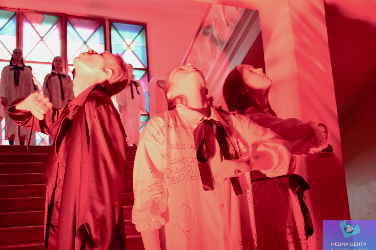 Между первой и второй частью мероприятия в холле 2-го этажа для гостей университета прошел перформанс «Три» по мотивам пьесы А.П. Чехова «Три сестры» от студентов-хореографов. Также с творческим номером выступили Екатерина Рукавишникова и Александр Диок.