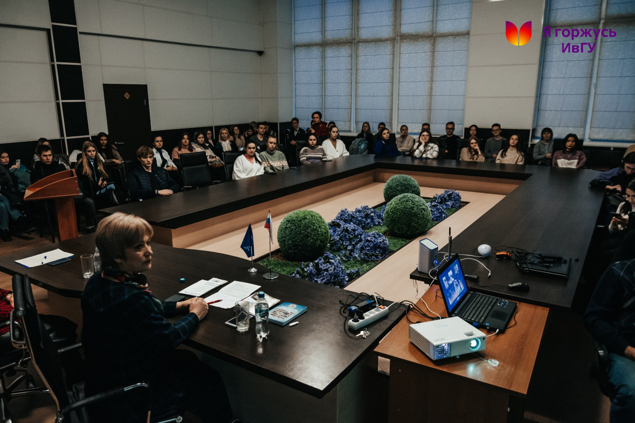 6 декабря, в преддверии Дня прав человека, в конференц-зале 6-го учебного корпуса ИвГУ состоялась встреча студентов различных направлений подготовки с известным общественным деятелем, Уполномоченным по правам человека в Ивановской области Светланой Анатольевной Шмелёвой.