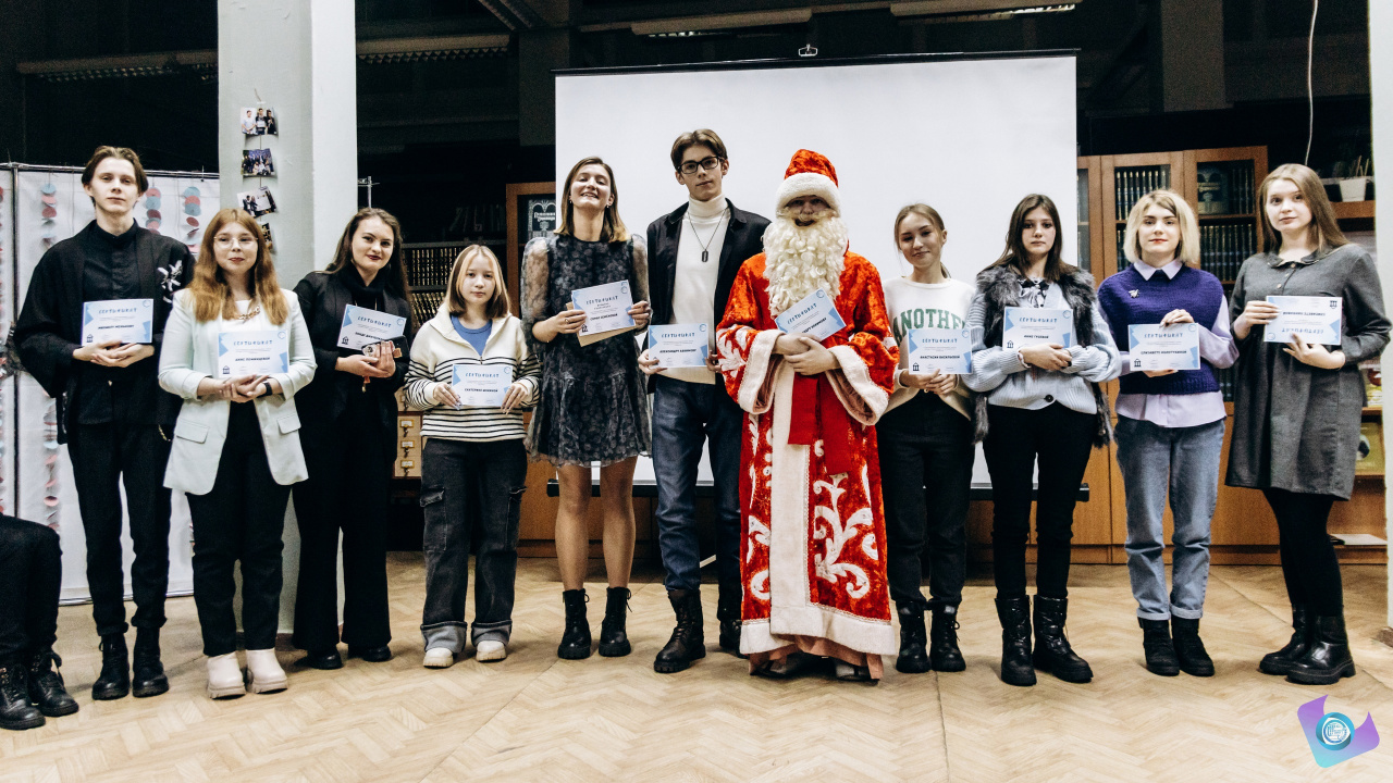 День рождения КОСС – это и выпускной Многоуровневой школы актива «Твой выбор» по направлениям «Пресса», «Фото», «Видео», «Волонтерство», «Инфографика», «Экология». На протяжении двух месяцев ребята получали новые знания и применяли их на практике. Дедушка Мороз наградил выпускников сертификатами об успешном прохождении школы.