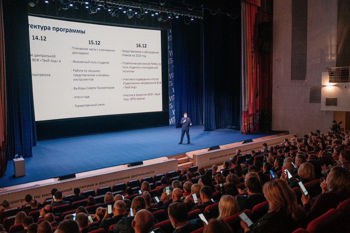 На Всероссийском конгрессе по молодежной политике и воспитательной деятельности, который проходит в рамках Всероссийского студенческого форума «Твой ход – 2022», состоялось обсуждение обновленных принципов воспитательной деятельности в вузах России. Конгресс собрал более 700 проректоров со всей России, представителей федеральных органов исполнительной власти, Росмолодёжи, аппаратов полномочных представителей Президента России в федеральных округах. От ИвГУ участие в Конгрессе принял проректор по молодежной политике и социальному развитию Никита Дмитриевич Сорокин.