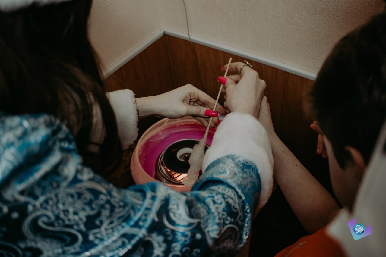 Студенты провели мастер-класс по приготовлению сахарной ваты, помогли детям написать письма для Деда Мороза и, конечно, порадовали юных зрителей сладкими подарками. Тимофей Семенов и Нона Закарян выступили в роли Деда Мороза и Снегурочки, Кристина Седакова и Елизавета Качалова провели психологический тренинг.