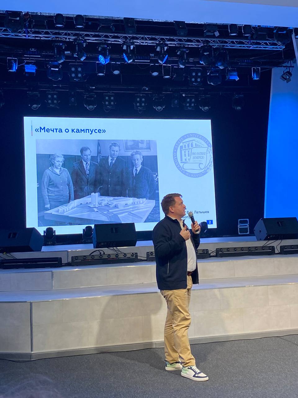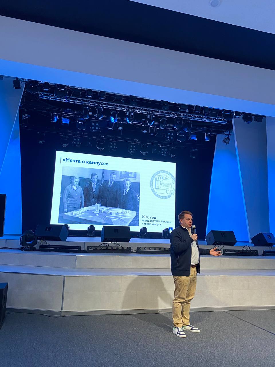 В начале мероприятия выступил Председатель Совета ректоров вузов Ивановской области, ректор ИвГУ А.А. Малыгин. В своей просветительской лекции он объяснил широкой аудитории, что такое кампусы, в чем заключается их предназначение и какова мировая практика в этом вопросе. Интересный факт истории: в 1976 году для ИвГУ предполагалось создать масштабный кампус в совершенно другом месте, однако эта идея не была реализована – зато должна вскоре начаться реализация идеи межвузовского «кампуса мирового уровня» в пространстве БИМа. Ректор рассказал, какие научные центры и образовательные программы там планируются, где будут жить и чем заниматься студенты.