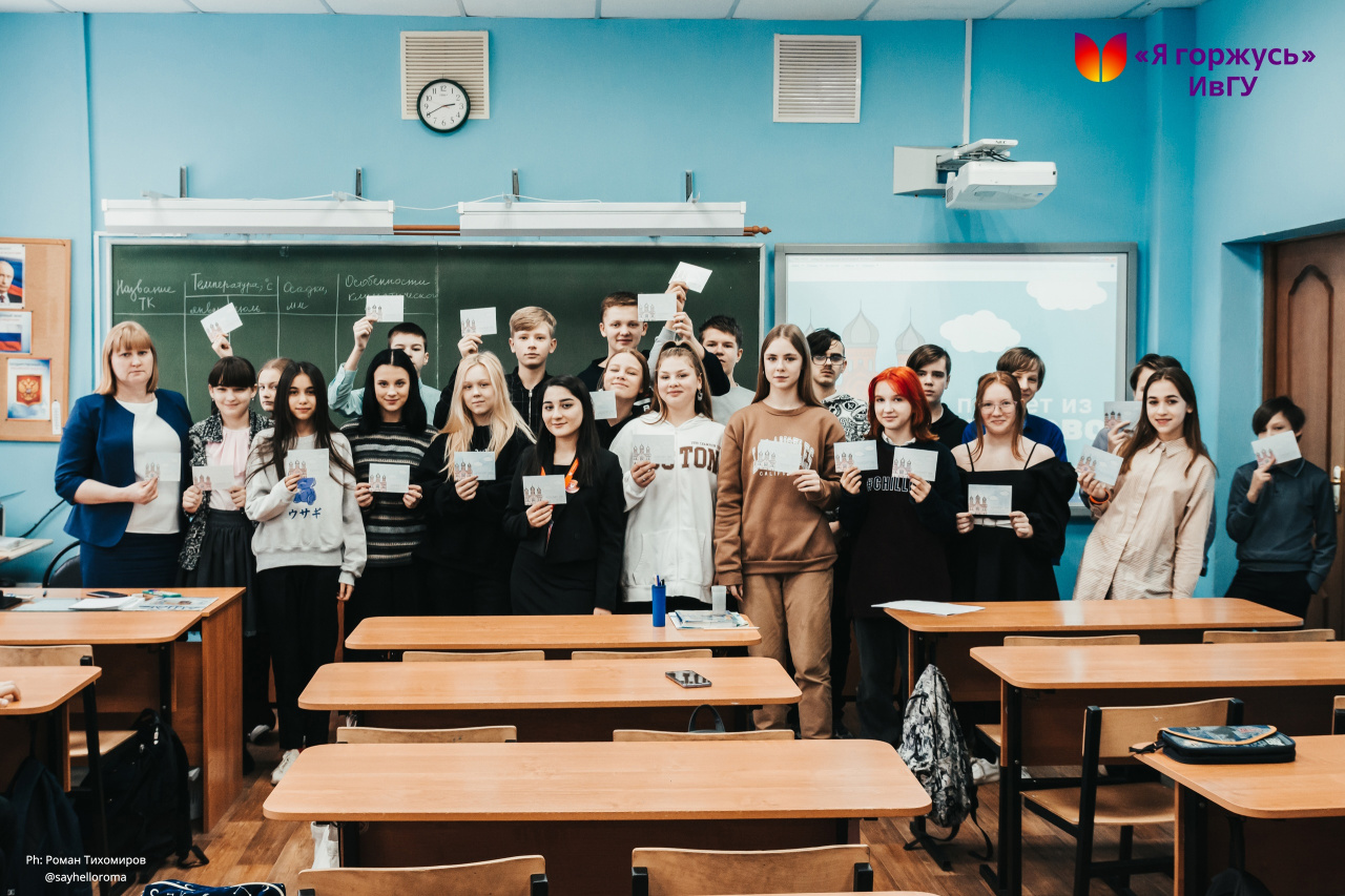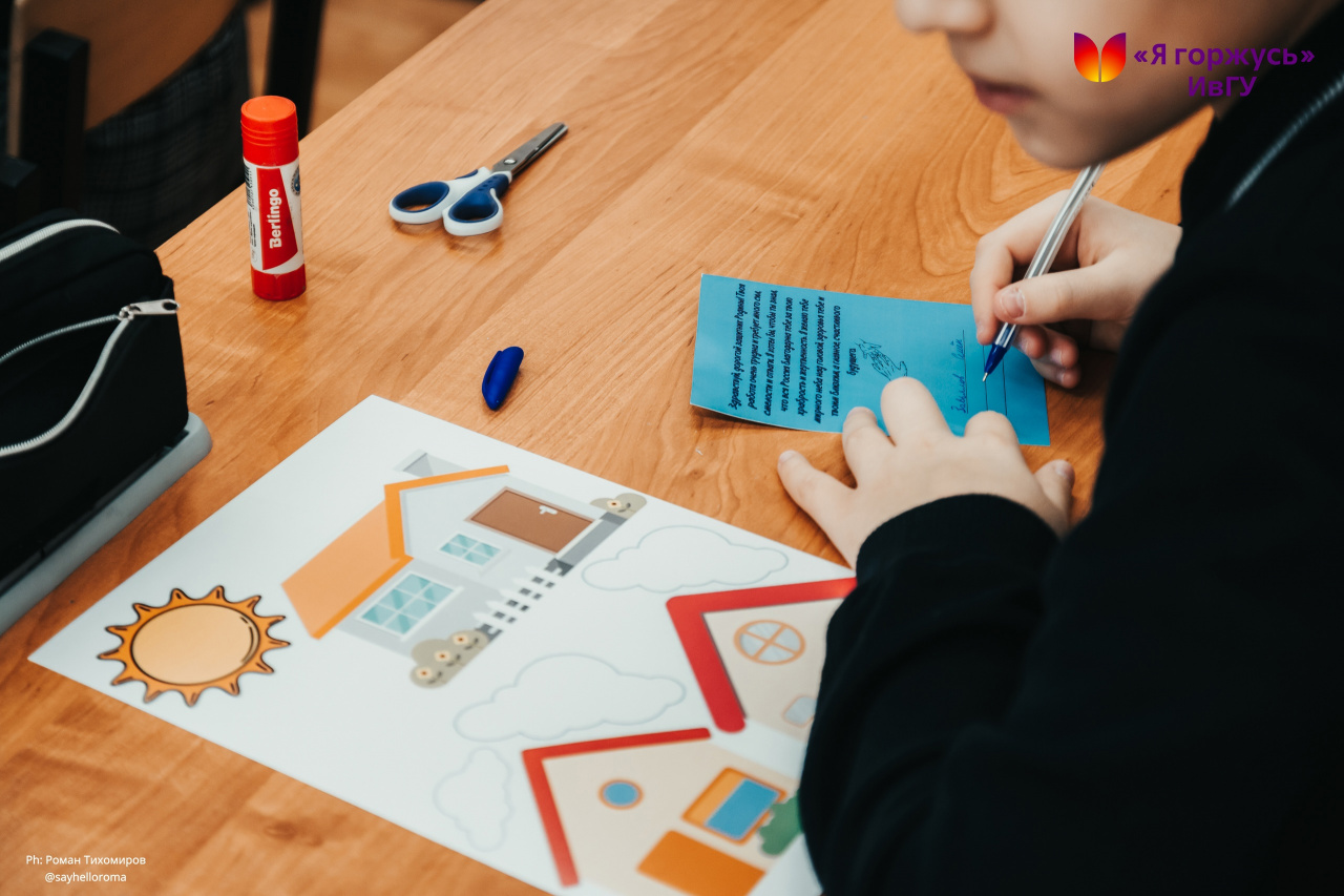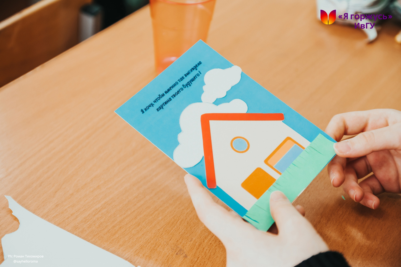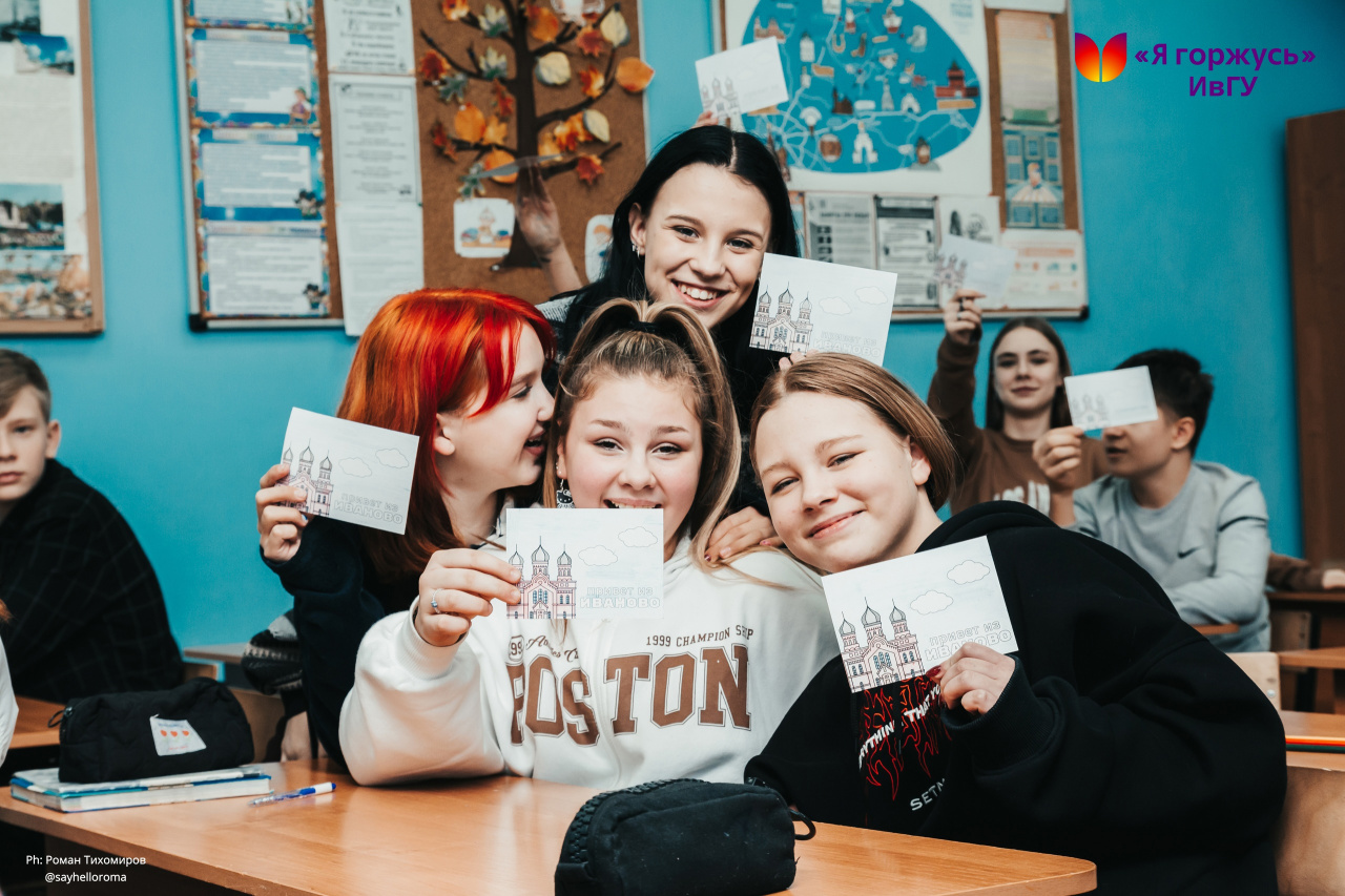 Клуб «Я горжусь» (ИвГУ) решил поддержать защитников нашей Родины и сделать им небольшой подарок, который скрасит им трудное время. Так появилась на свет патриотическая акция «Весточка». Она подразумевает создание школьниками поздравительных открыток – раскрасок и аппликаций, в которых ребята смогут передать свои поздравления с праздником и искренние пожелания нашим бойцам. Сами открытки направляются солдатам нашей армии, участвующим в боевых действиях.