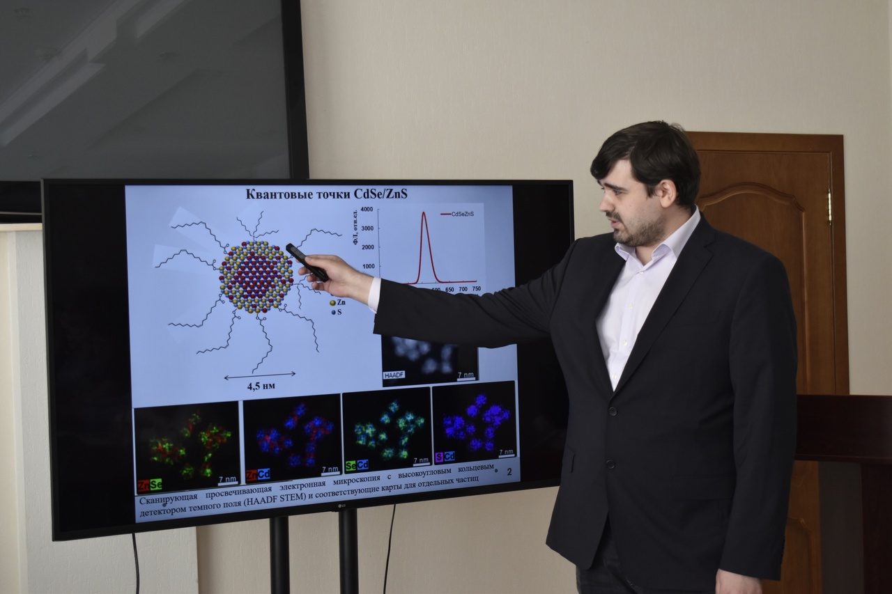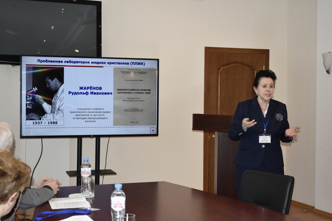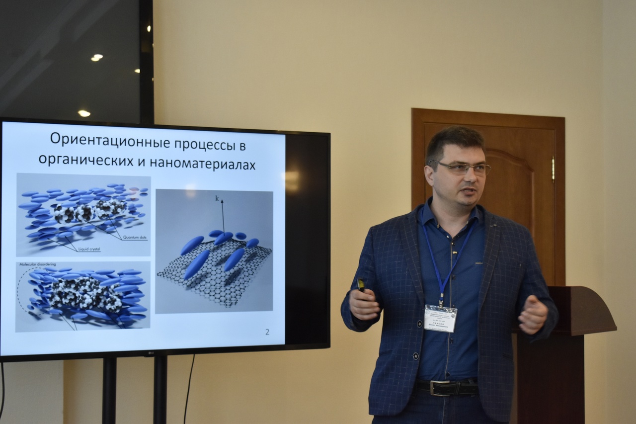 Первый пленарный доклад директора НИИН ИвГУ проф. Усольцевой Н.В. был посвящен вкладу профессора Чистякова И.Г. в развитие учений о жидких кристаллах. Второй пленарный доклад был представлен д.ф.-м. наук Д.Н. Чаусовым (Москва). Он отразил результаты исследований, проведенных его научной группой совместно с представителями НИИН ИвГУ, по влиянию функционализации углеродных наноструктур на мезоморфизм и диэлектрические свойства дисперсий углеродных наноструктур в холестерическом жидком кристалле. Третий планарный доклад был сделан аспирантом ИХР РАН Никитиным К.С. и был посвящен Ленгмюровским технологиям как способу получения функционального наноматериала.
