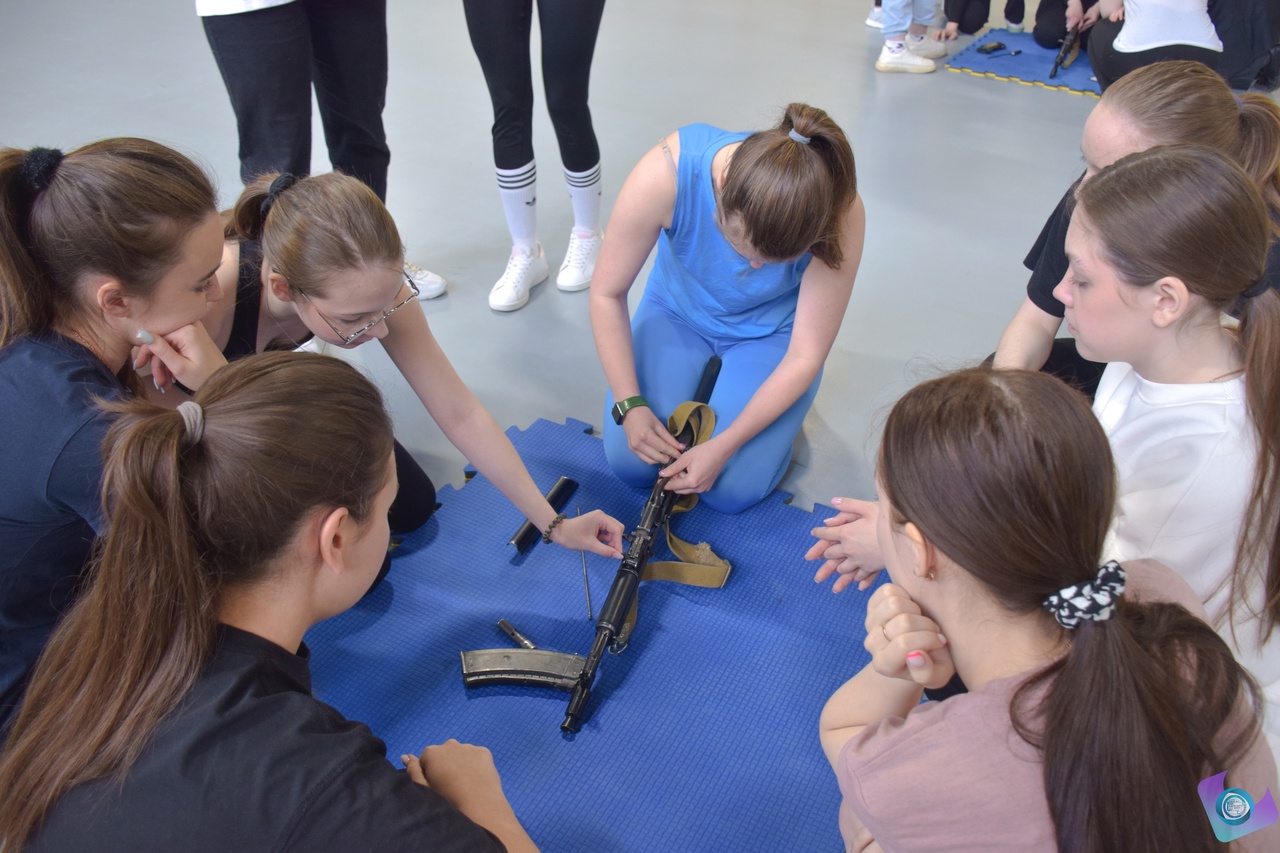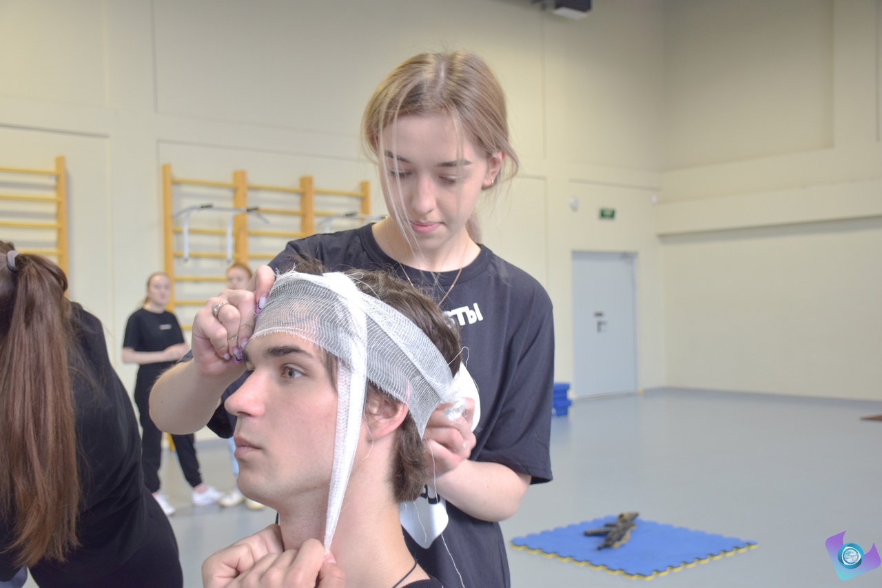 А далее участницам предстояло последовательно «на скорость и качество» разобрать и собрать автомат, перевязать «раненых» (которых очень убедительно изображали удачно подвернувшиеся парни), правильно надеть противогаз и намотать портянки. Это было незабываемое зрелище – а победителя, как водится, узнаем на Финале!