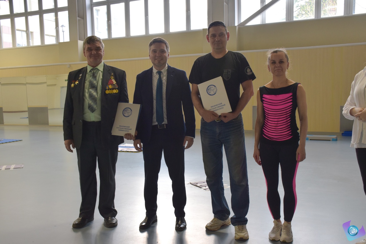 В роли требовательных, но и одновременно заботливых инструкторов от ДОСААФ выступили ветераны общественно-патриотического движения Андрей Витальевич Скворцов и Виктор Владиславович Чесноков, которым проректор ИвГУ Н.Д. Сорокин вручил Благодарственные письма за совместную работу по воспитанию традиционных духовно-нравственных ценностей у обучающихся ИвГУ.