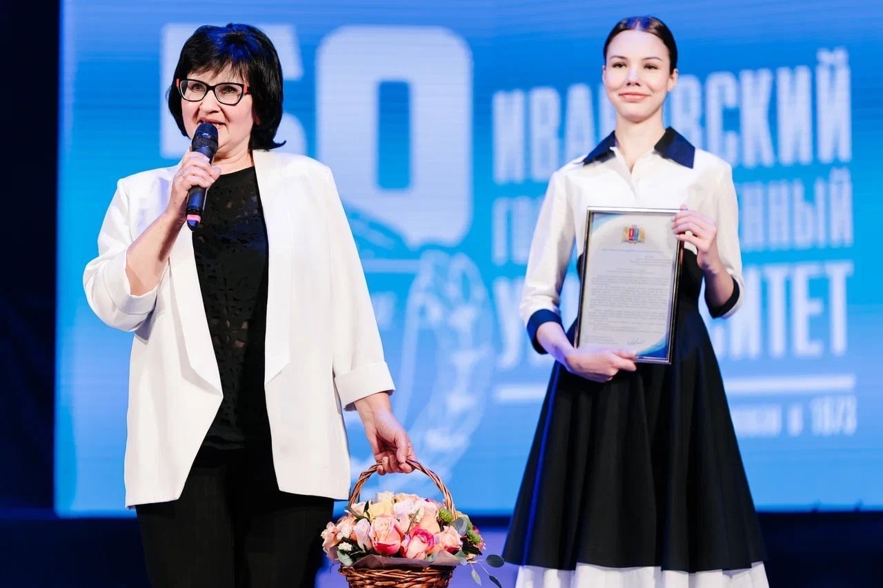 «Юбилей университета – это действительно наш общий праздник, потому что у каждого из присутствующих здесь с ним связаны самые разные воспоминания – у кого-то это просто студенческие годы, у кого-то профессиональное становление, научная работа», – отметила председатель Ивановской областной Думы Марина Дмитриева (наша выпускница, работавшая и преподавателем ИвГУ). Марина Авенировна напомнила, что быть студентом университета всегда было престижно, диплом ИвГУ – настоящий знак качества, и эту высокую планку преподаватели вуза и студенты поддерживают уже пять десятилетий. Марина Дмитриева выразила благодарность всем, кто вносит свой вклад в развитие вуза, и пожелала ему новых успехов и достижений.