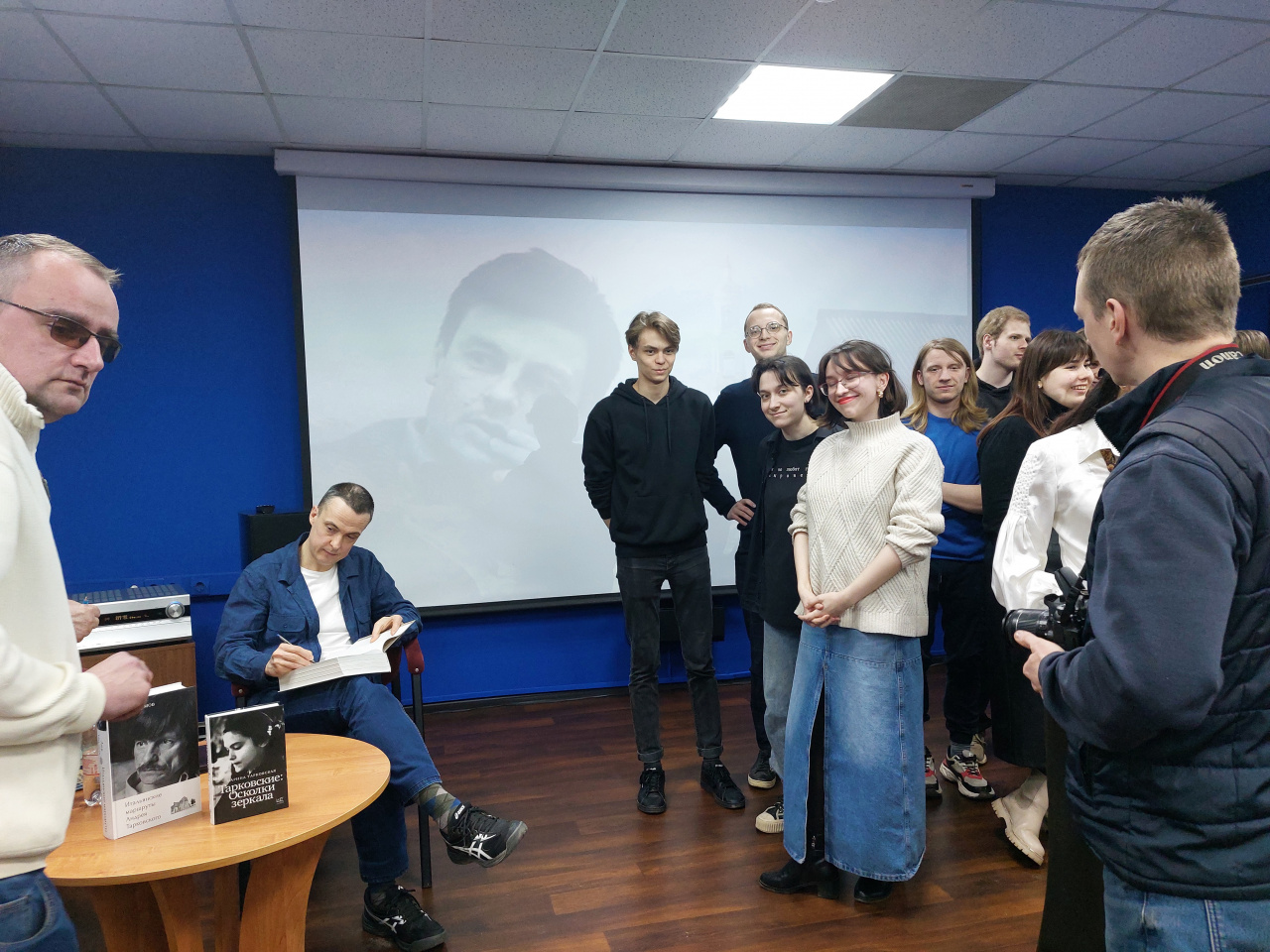 Студенты и преподаватели, гости университета сначала встречались с фотографом-художником Андреем Егоровым, автором фоторабот, представленных на выставке «ЭФФЕКТ Зеркала». Художник не только рассказывал истории создания портретов, с героями которых его сводила судьба, он сумел показать некоторые важные фрагменты целой эпохи –«кинофестиваля Тарковского». А.Егоров раскрыл некоторые неизвестные стороны и своей биографии, читал свои стихи, демонстрировал созданную им скульптуру – новое увлечение мастера. ….