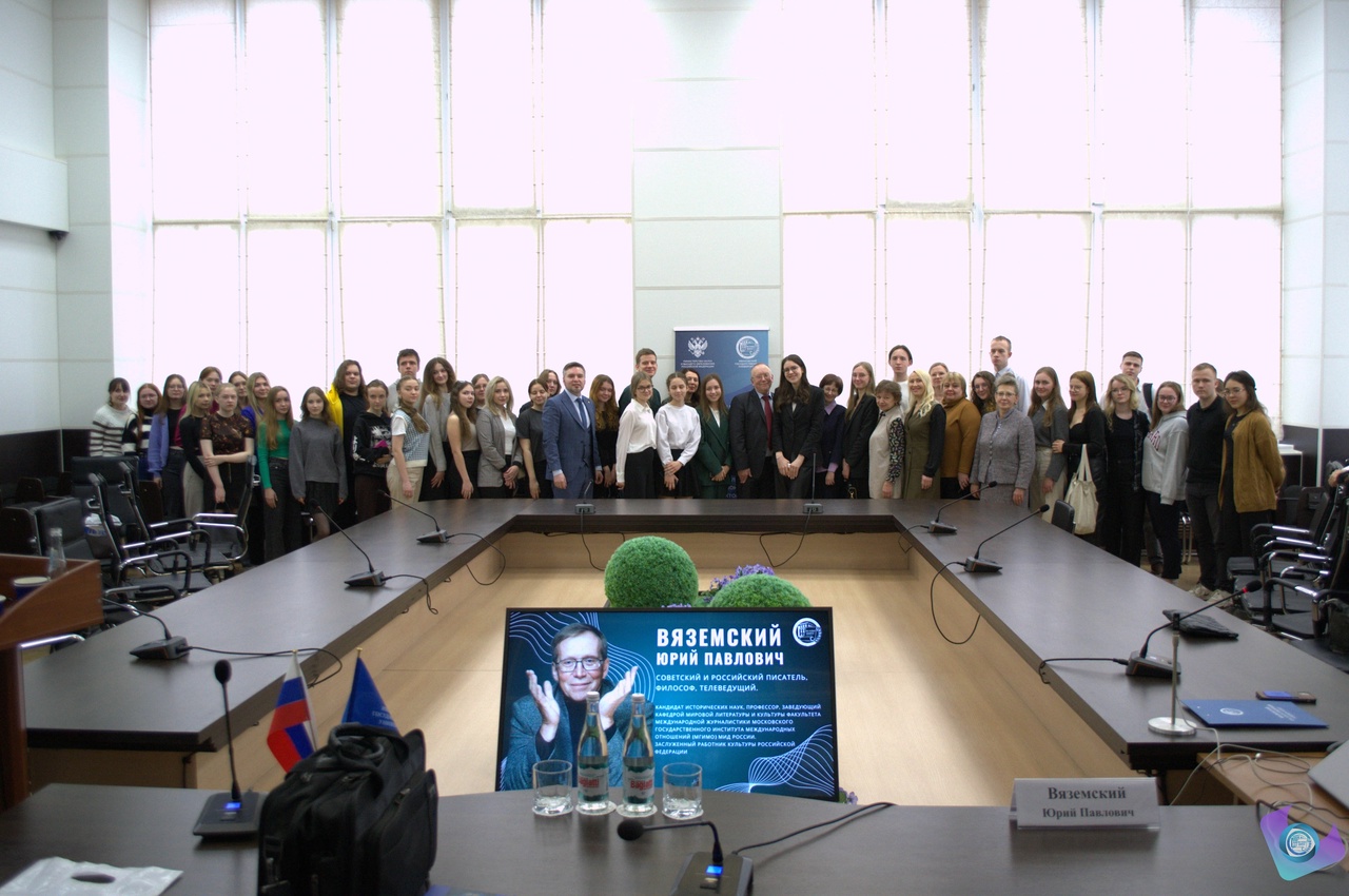 18 апреля в конференц-зале 6-го корпуса состоялась встреча с Юрием Павловичем Вяземским – писателем, ученым, философом, телеведущим, зав. кафедрой мировой литературы и культуры факультета международной журналистики МГИМО.