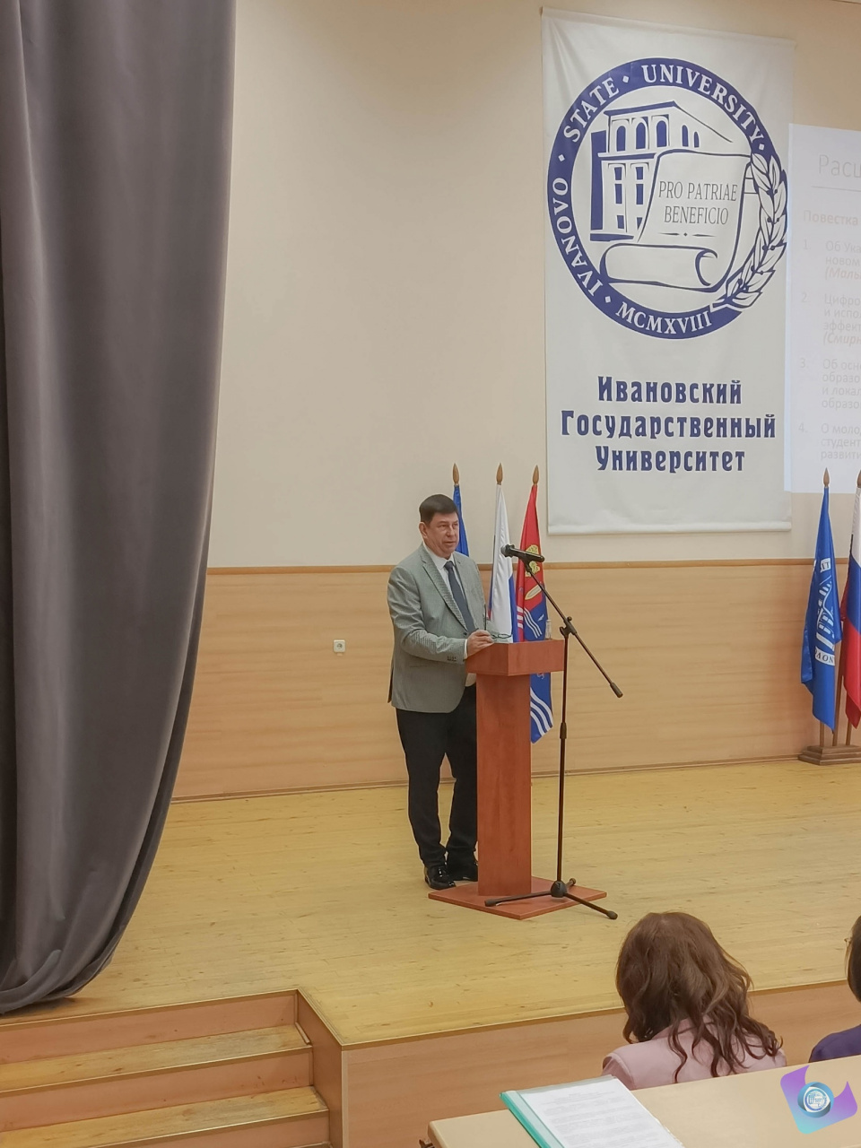 Открывая встречу, ректор ИвГУ Алексей Малыгин отметил, что в связи с объявленными трансформациями высшего образования (уход из Болонской системы и др.) объективно возникает множество неопределенностей и вопросов, связанных с новой структурой и содержанием высшего образования, обновлением документной базы и форм отчетности, снижением бюрократической нагрузки на преподавателя, проблемами аккредитации и мониторинга, «цифровой составляющей» процесса образования. Здесь важна как «информация сверху», так и «обратная связь», позволяющая полноценно учесть мнение профессионального сообщества при выработке долгосрочной стратегии.
