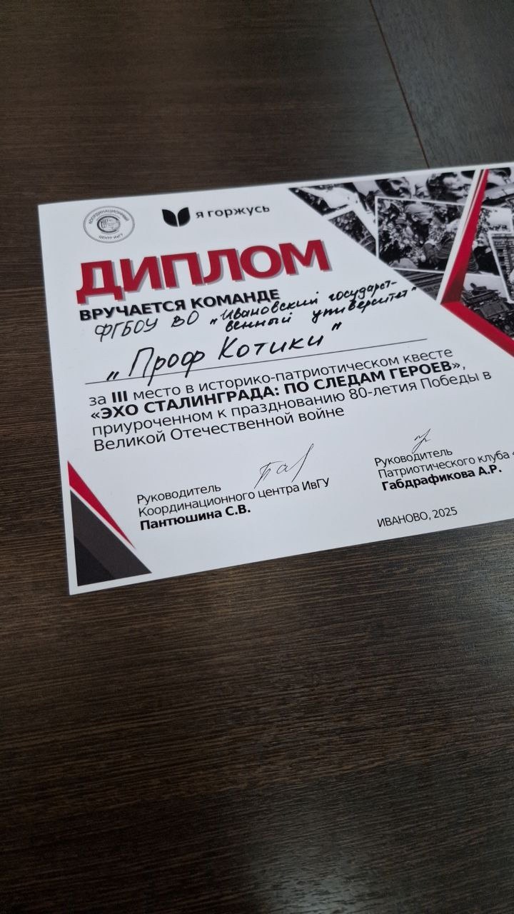 7 февраля в 6-м корпусе ИвГУ прошёл увлекательный квест от клуба «Я горжусь» ИвГУ и Координационного центра ИвГУ, посвящённый победе в Сталинградской битве 1942-1943 годов.