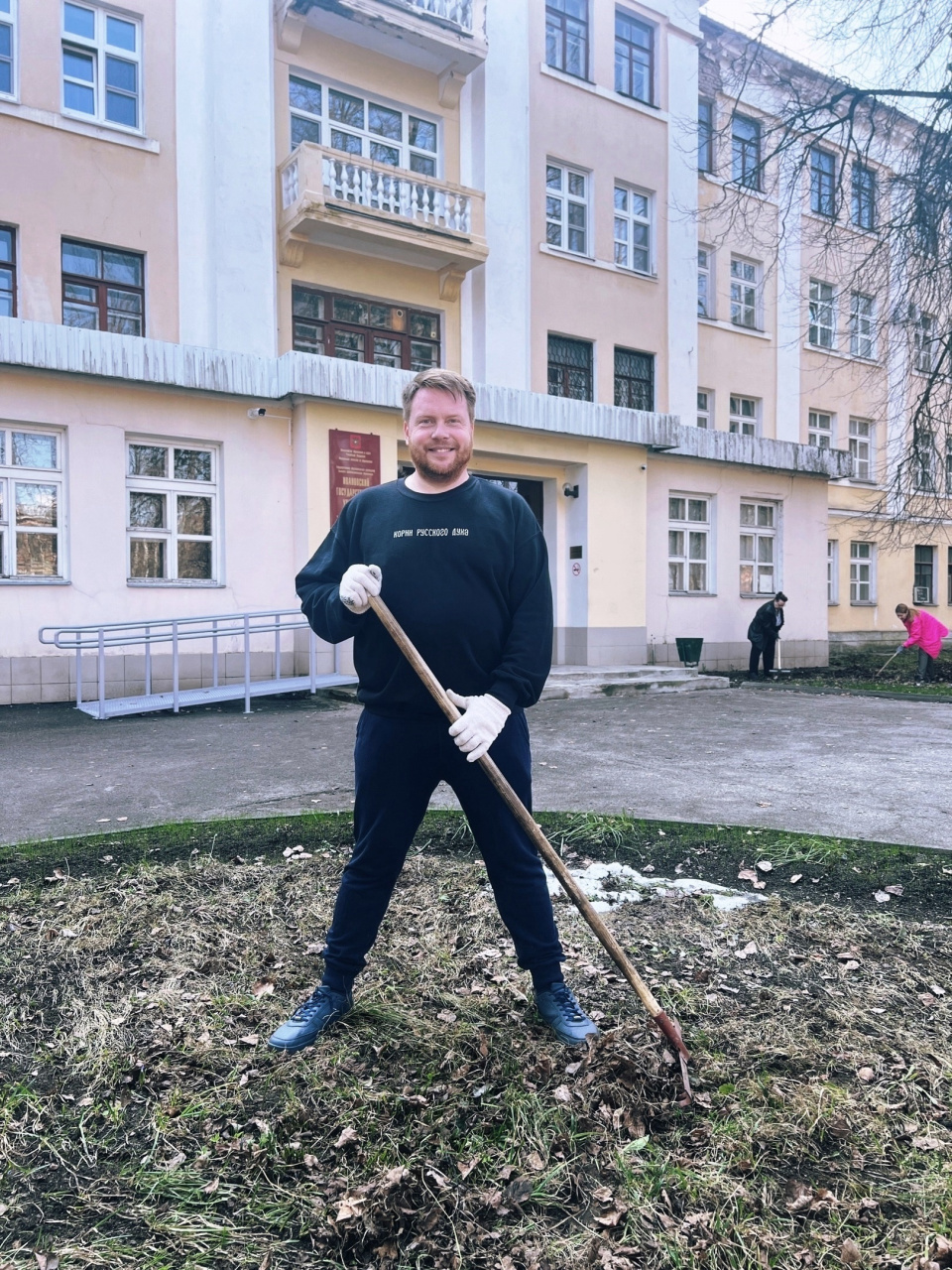 18 апреля дружный коллектив ИвГУ под бодрым руководством ректората так мощно и энергично провел ежегодный субботник на подведомственной территории, что разомлевшее не по-апрельски солнышко даже не успело наиграться блеском новеньких грабель!