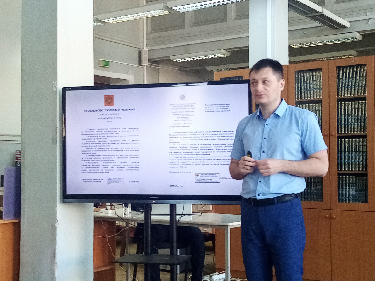 Открыла круглый стол Т.П. Кустова, д-р хим. наук, профессор, директор Института математики, информационных технологий и естественных наук ИвГУ. Она познакомила участников с изменениями, происходящими в высшем образовании, которые в первую очередь затрагивают будущих абитуриентов. М.В. Шепелев, канд. хим. наук, зав. кафедрой теории и методики общего образования ГАУДПО ИО «Университет непрерывного образования и инноваций», познакомил участников с последними нормативными документами и планируемыми мероприятиями по развитии математического и естественнонаучного образования в Ивановской области.