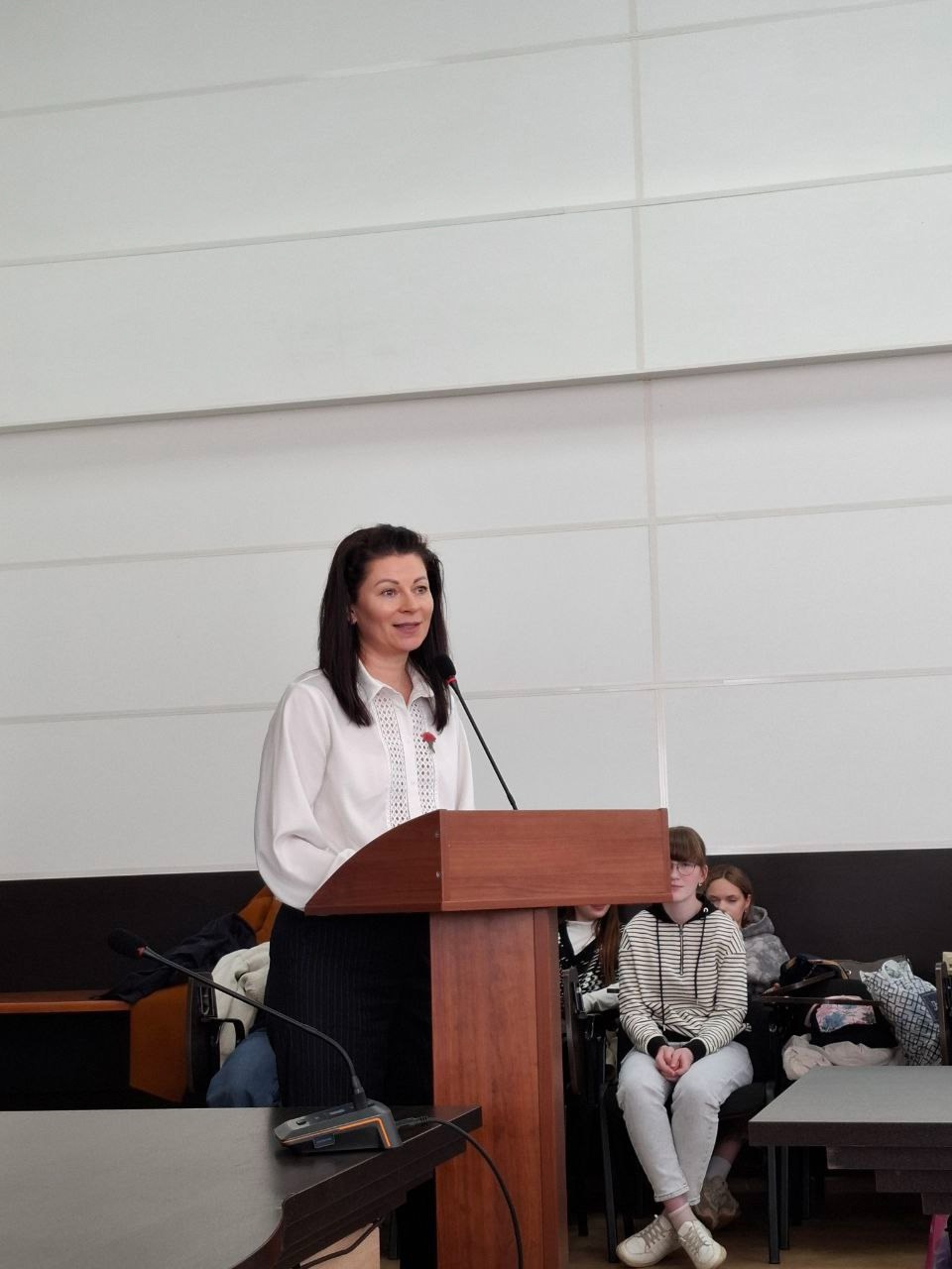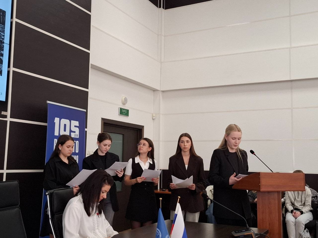 Без преувеличения, данное мероприятие имело особенный характер, т.к. оно вобрало в себя и историю разных народов, объединенных одной общей целью, и вклад в Победу тех отраслей народного хозяйства и тех людей, которые особенно близки нашим студентам в силу их будущей профессии. С приветственным словом к участникам обратилась директор Института гуманитарных наук С.А. Маник.
