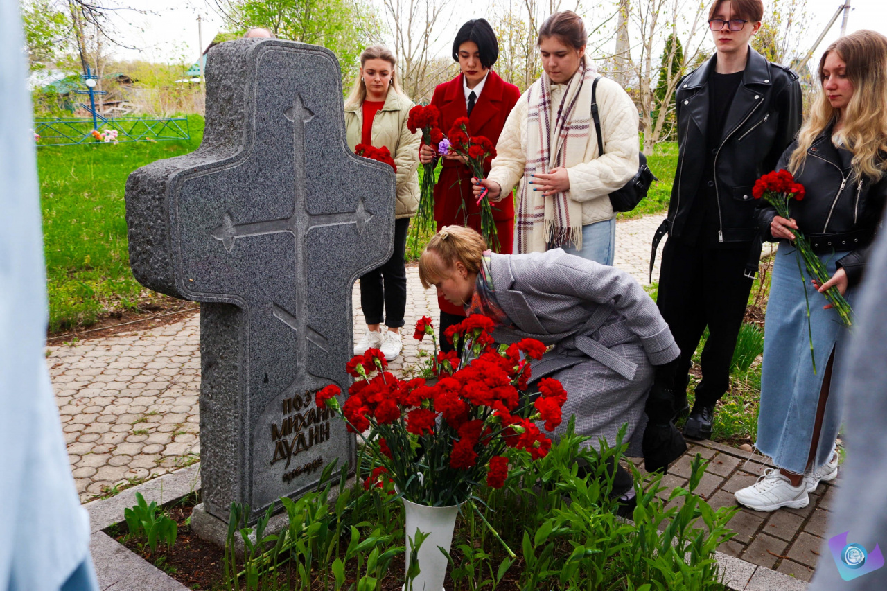 Теплыми и прочувствованными словами вспомнили Дудина проректор по социальному развитию и молодежной политике Никита Дмитриевич Сорокин (сам фурмановчанин), и доцент кафедры отечественной филологии Дмитрий Леонидович Лакербай, прочитавший проникновенные дудинские стихи. Члены делегации почтили память поэта минутой молчания и возложением цветов.
