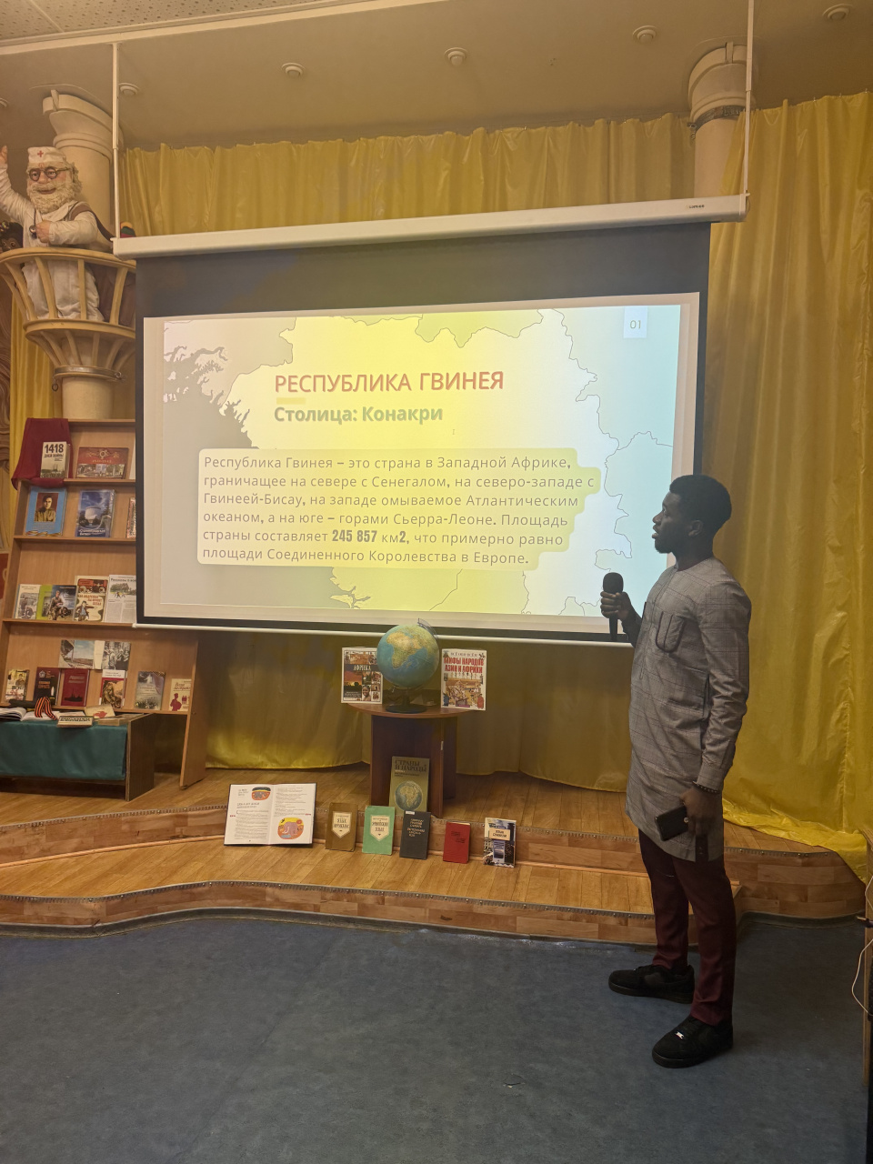 На празднике ребята рассказали о своих странах, продемонстрировали национальные костюмы, национальные песни и танцы. Познакомиться с культурой стран Африки пришли гости – студенты из других стран, в том числе и посетители библиотеки.