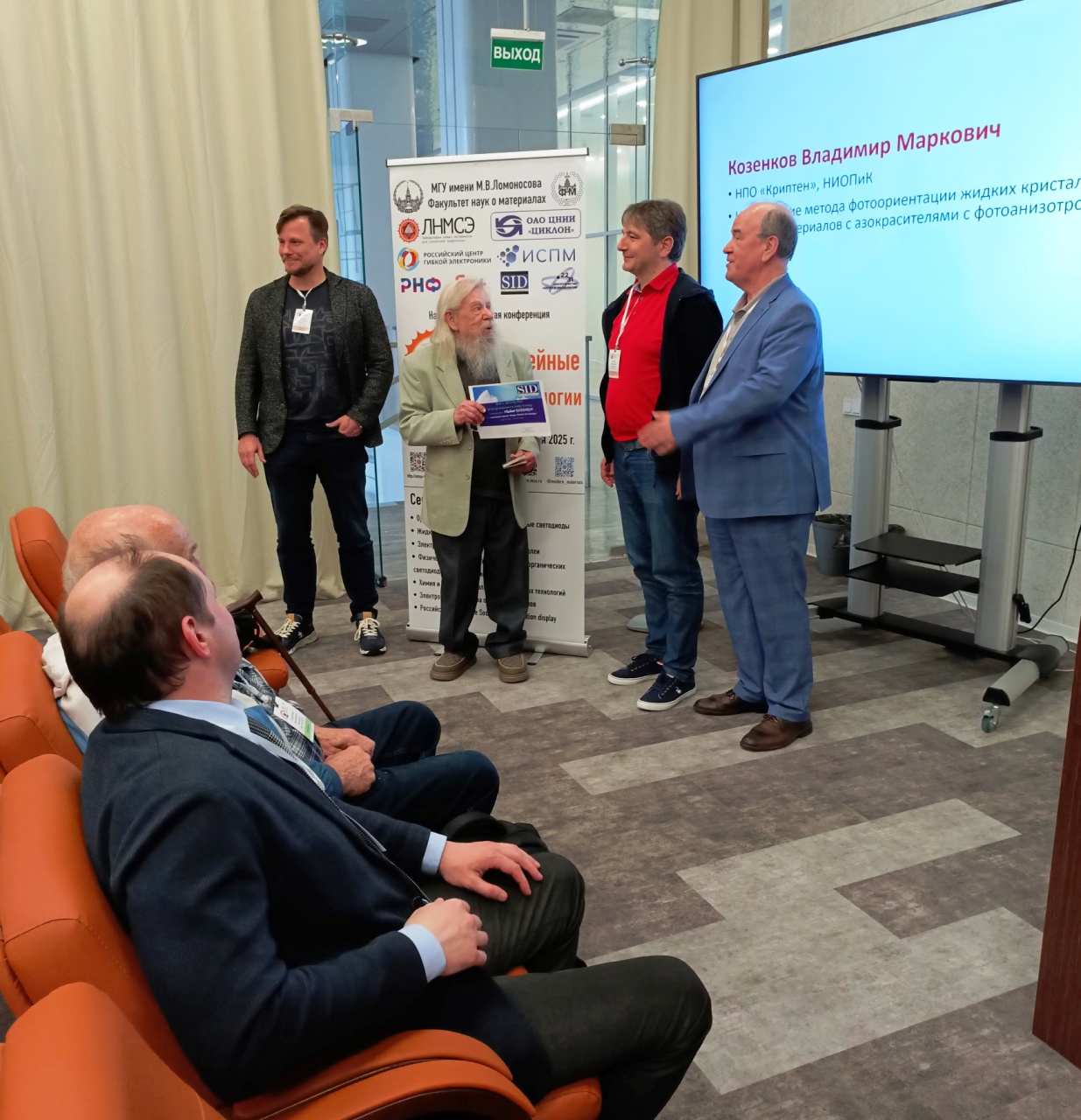 Жидкокристаллическая тематика также получила достойное представление на этой конференции. С.А. Студенцов от имени ООО «Рефэлектрокомплект» рассказал о производимых на этом предприятии жидкокристаллических дисплеях. Д-р физ.-мат. наук В.Я. Зырянов из Института физики им. Л.В. Киренского (ФИЦ КНЦ СО РАН) представил физические аспекты работы электрооптических устройств на основе жидких кристаллов с управляемым поверхностным сцеплением.