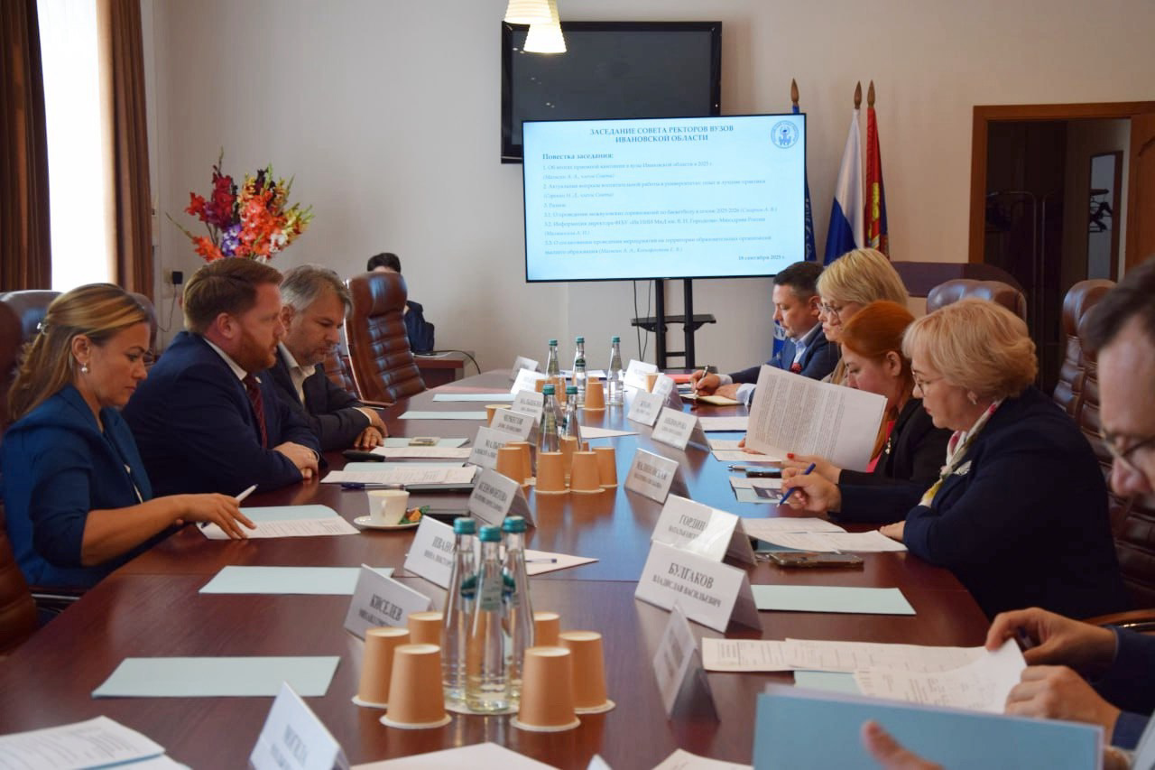 18 сентября состоялось первое в новом учебном году заседание Совета ректоров высших учебных заведений Ивановской области с участием заместителя Председателя Правительства Ивановской области Д.Л. Черкесова и директора Департамента образования и науки Ивановской области Е.В. Ксенофонтовой.