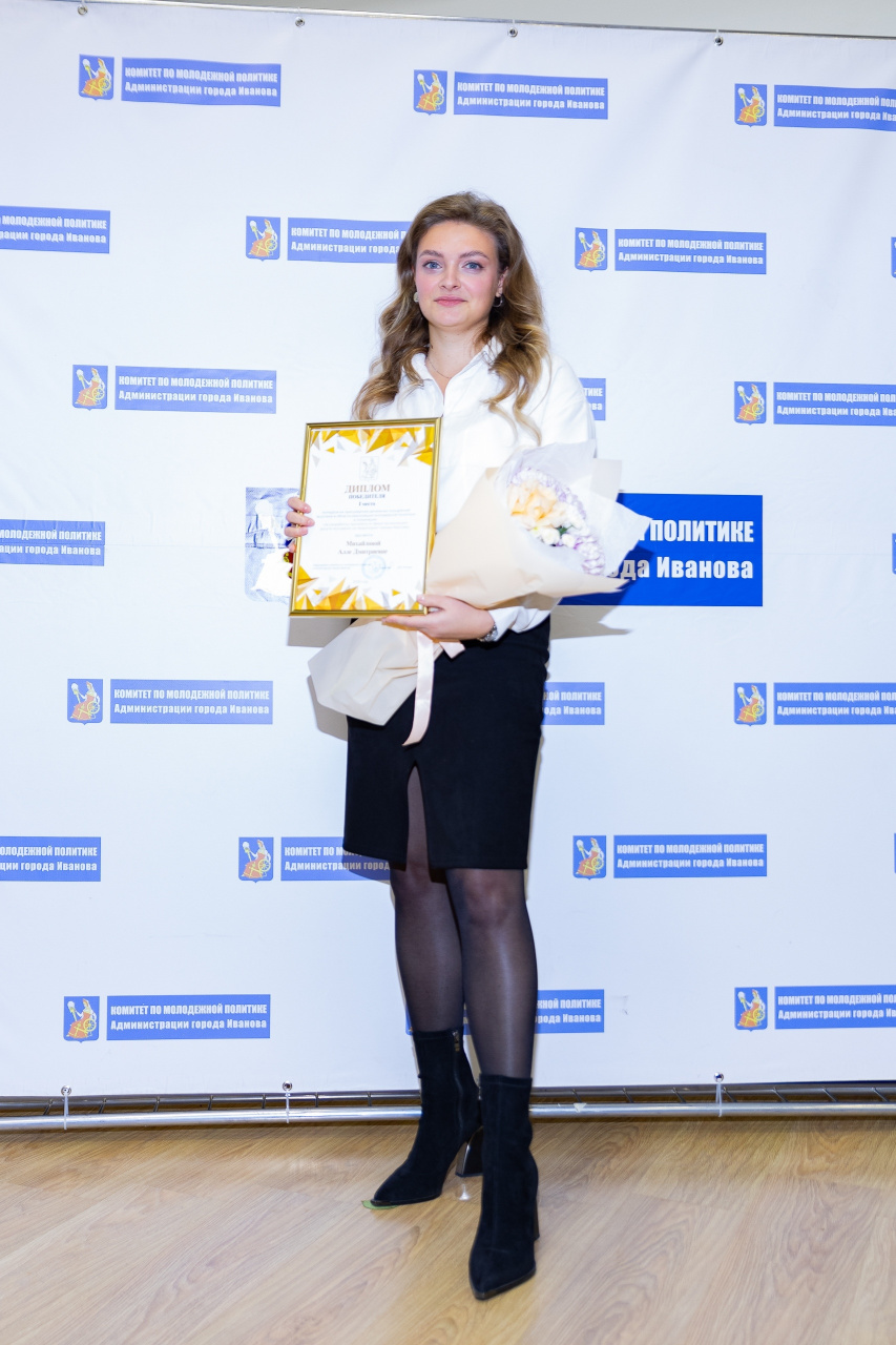 Победителем конкурса в номинации «За разработку программ в сфере организации досуга молодежи на территории города Иванова» стала Алла Михайлова (1 место), начальник отдела воспитательной работы ФГБОУ ВО «Ивановский государственный университет».