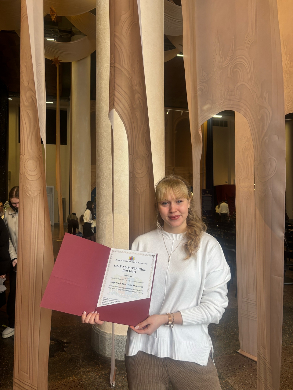 Сертификат стипендиата областного комитета Профсоюза образования вручен студентке 3-го курса Олесе Шишкиной.