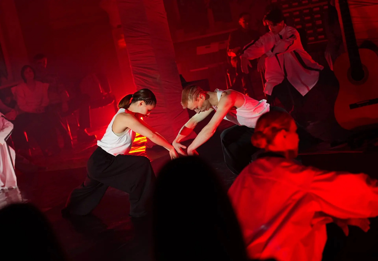 Яркой частью вечера стал показ пластического спектакля "Мне есть чем оправдаться перед ним", в основе которого судьба поэта, музыканта, актера В. Высоцкого. История его жизни и творчества «рассказывается» посредством современной хореографии, пластики и, конечно, словами его произведений.