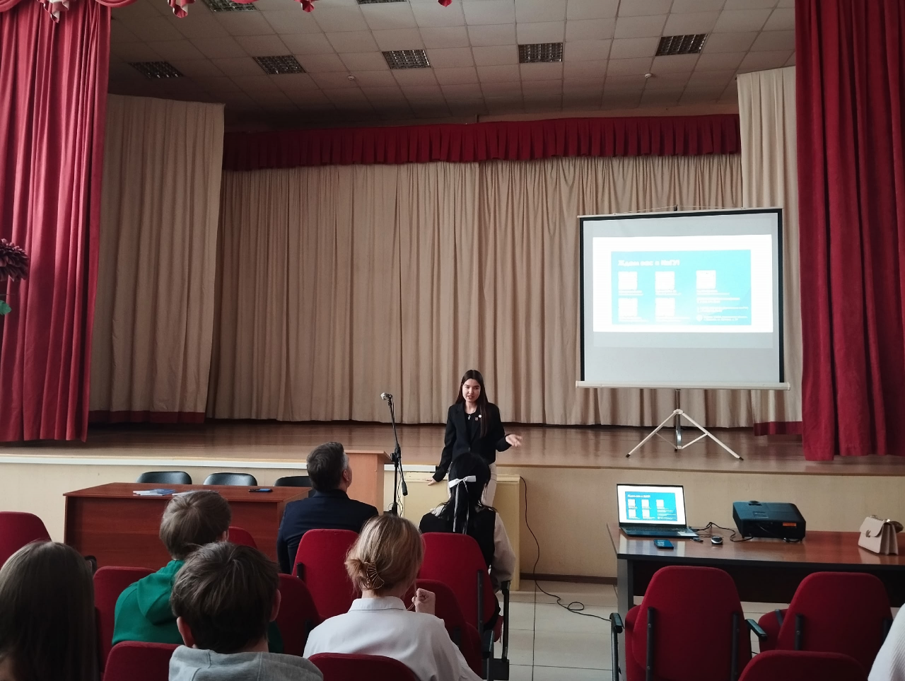 Э. Акчурина поделилась с ребятами интересными фактами из студенческой жизни, дала полезные советы, рассказала про широкий круг возможностей для студентов развиваться в учебной, научной, спортивной, общественной и культурной сферах.
