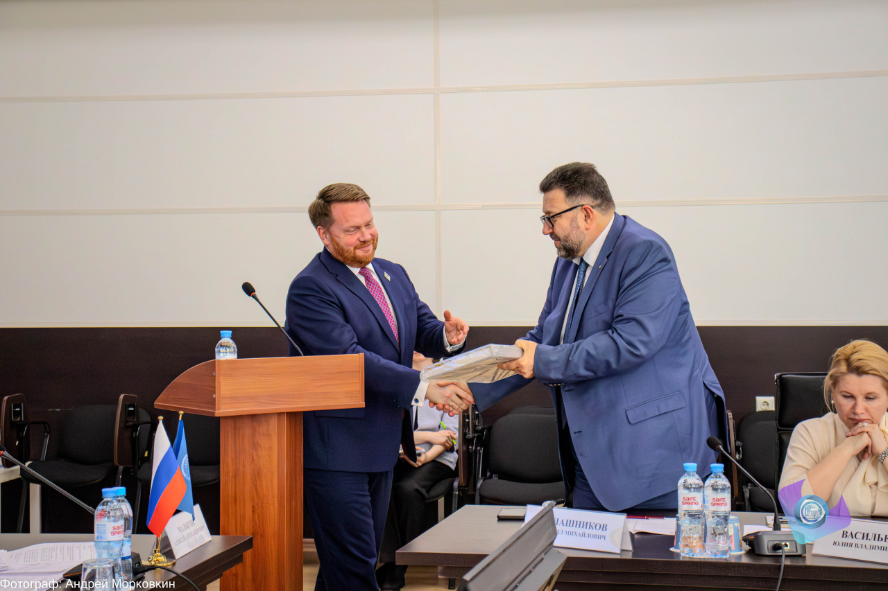 С приветственным словом к участникам обратился Главный федеральный инспектор по Ивановской области аппарата полномочного представителя Президента Российской Федерации в Центральном федеральном округе Михаил Калашников. От имени Полномочного представителя Президента РФ в ЦФО Игоря Щёголева он передал членам президиума символичную книгу «Прокудин-Горский. Центральная Россия».