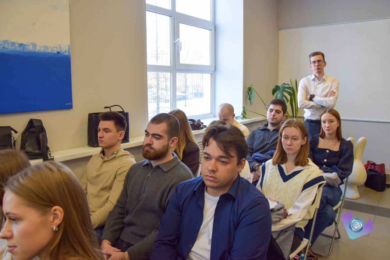 Спикер поделился со слушателями информацией о ведущих направлениях в Юридическом бюро «Константа» и деятельности компании в целом, о процессе подбора кандидатов на работу и о перспективах развития для молодых сотрудников. Помимо этого, гость отметил, что для юриста очень важно обладать профессиональными компетенциями, но наряду с ними необходимо развивать и личностные компетенции.