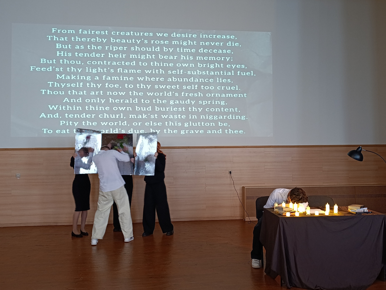 Активное участие в проекте приняли первокурсники и студенты второго курса, которые представили не только свои постановки, но и прекрасные постеры, посвящённые Шекспиру и его творчеству.