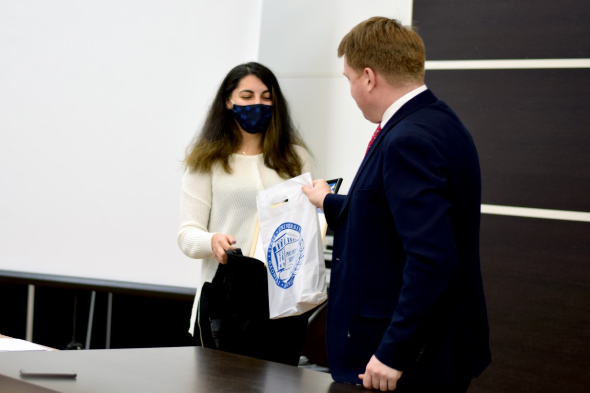25 января в конференц-зале 6-го корпуса ИвГУ прошла торжественная встреча избранного ректора ИвГУ А.А. Малыгина со студенческим активом. В своем приветственном слове ректор поздравил присутствующих с Днем студента и с Татьяниным днем, пожелал в первую очередь гордо нести имя студента ИвГУ в любых обстоятельствах, выразил уверенность, что мы достойно пройдем все волны пандемии, напомнил про необходимость вакцинации от ковида, а также о том, что администрация вуза, студенческий профком и КОСС всегда «в доступе», всегда открыты для обсуждения наболевших вопросов.