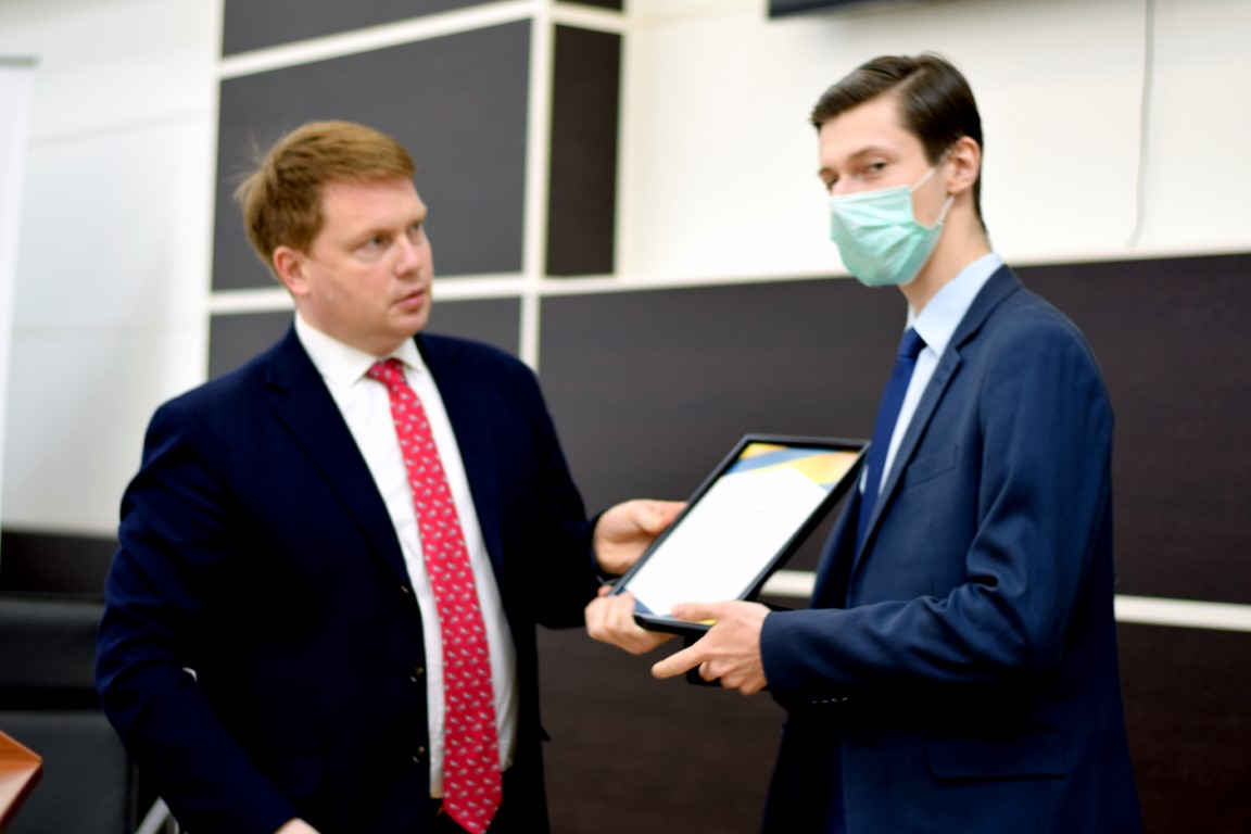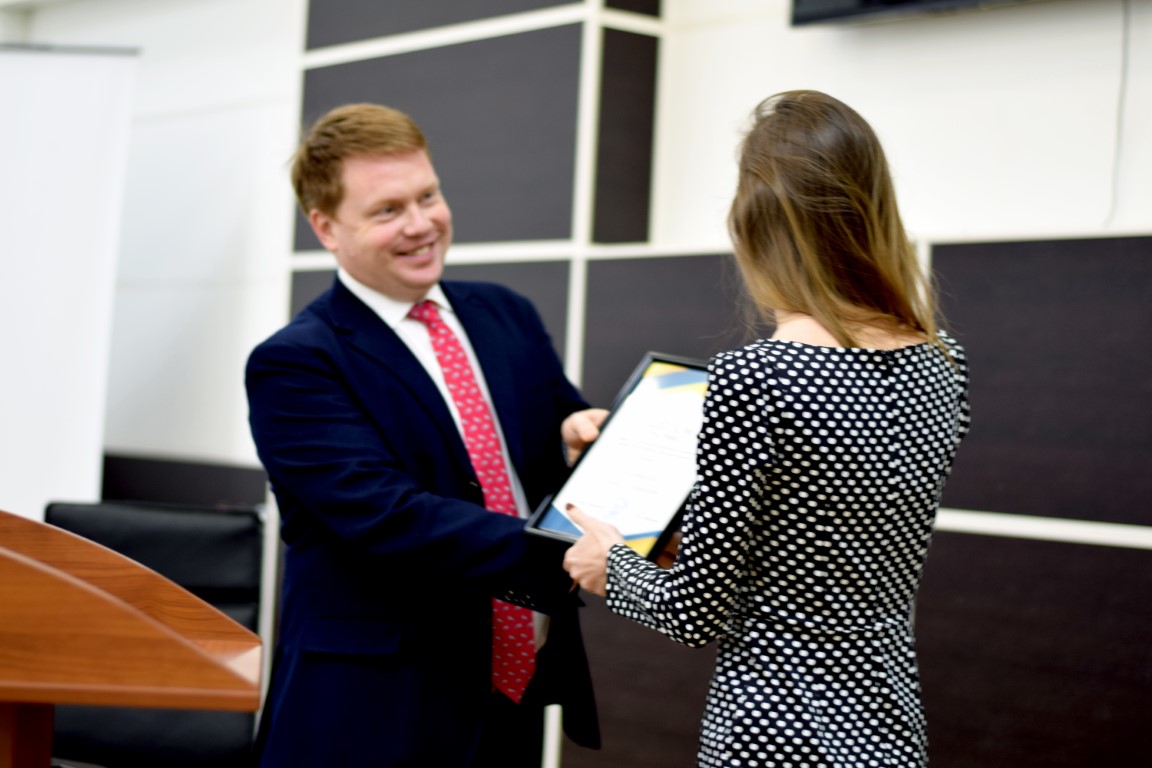 Проректор ИвГУ по социальному развитию и международной деятельности Н.Д. Сорокин напомнил о прошедшем конкурсе «Большие надежды» и о том, что студенты ИвГУ чаще других побеждают на многих конкурсах. Награждение победителей проходило в декабре, а здесь были торжественно вручены Дипломы участников.