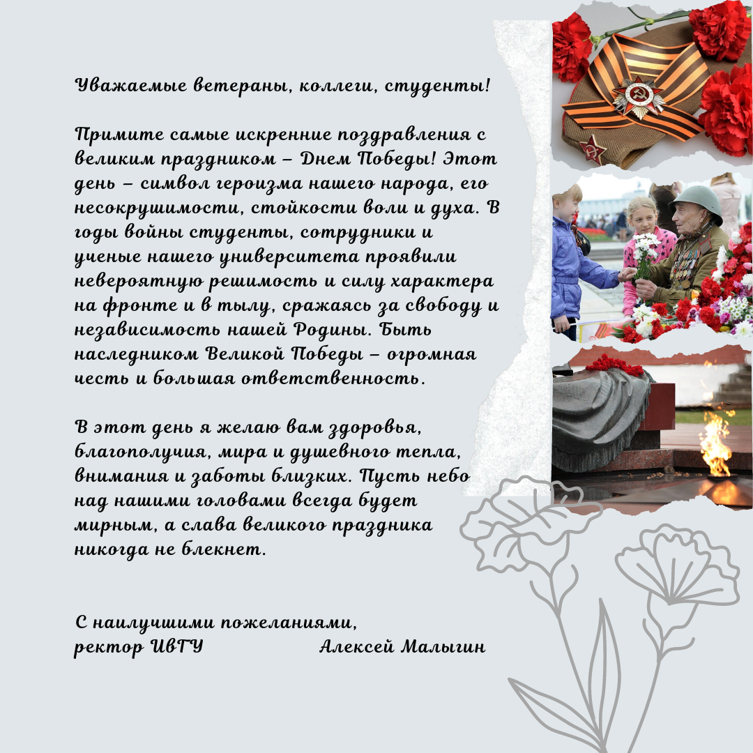 Этот день – символ героизма нашего народа, его несокрушимости, стойкости воли и духа. В годы войны студенты, сотрудники и ученые нашего университета проявили невероятную решимость и силу характера на фронте и в тылу, сражаясь за свободу и независимость нашей Родины. Быть наследником Великой Победы – огромная честь и большая ответственность.