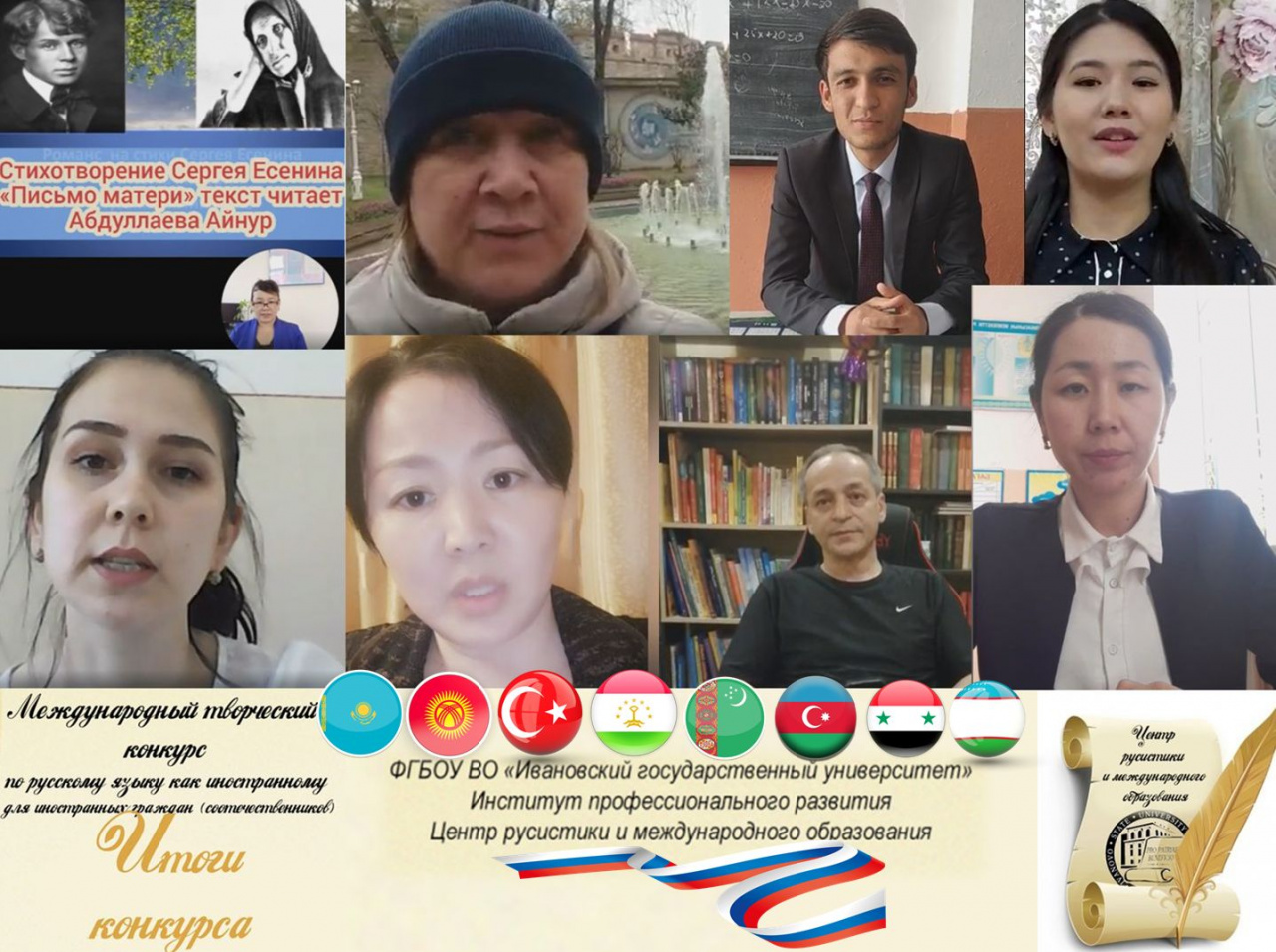Центр русистики и международного образования Института профессионального развития ИвГУ подвел итоги международного творческого конкурса по русскому языку как иностранному среди граждан зарубежных государств (соотечественников), имеющих высшее образование и владеющих русским языком как иностранным, интересующихся вопросами русского языка и культурой России.