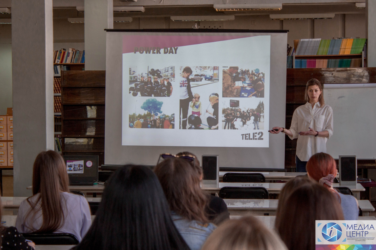 15 мая в читальном зале 1-го корпуса прошла встреча студентов с потенциальным работодателем, представителем компании “Tele2” Ириной Гончаровой. Ирина занимается формированием команды в 9 регионах, совершенствованием навыков и компетенций сотрудников для дальнейшего роста и развития в компании.