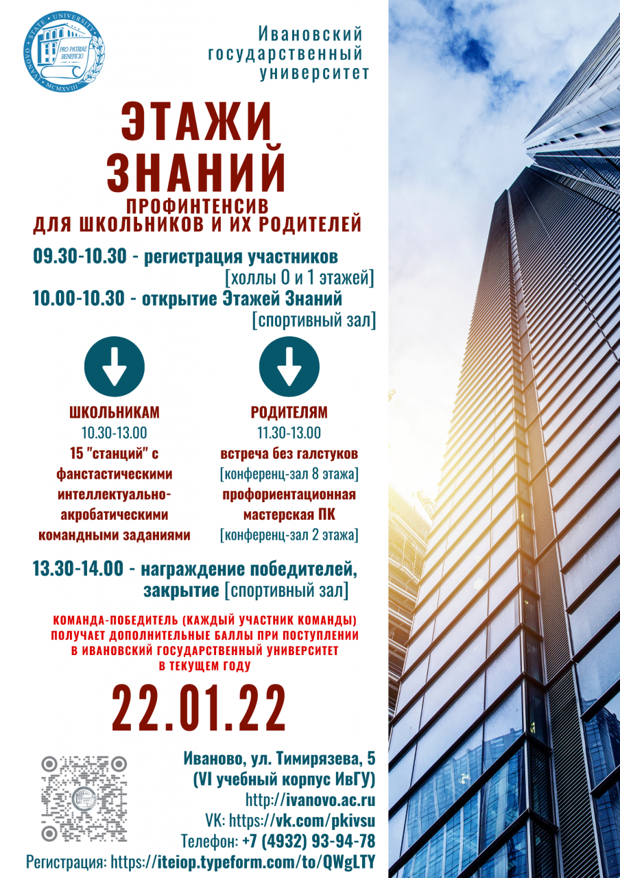 22 января в Ивановском государственном университете пройдет самый профориентационный интенсив «Этажи Знаний».