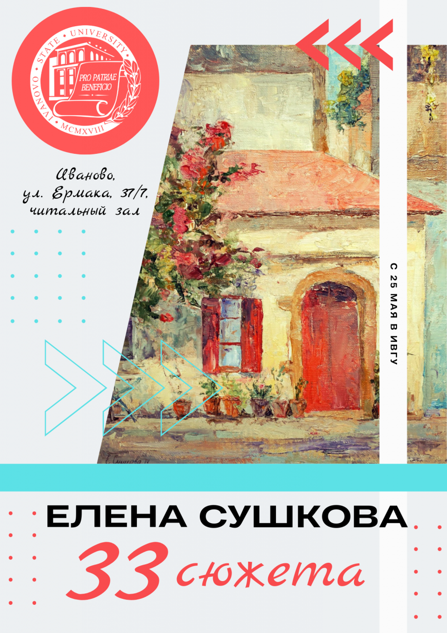 25 мая в 12:30 в читальном зале ИвГУ (ул. Ермака, 37/7, 2-й этаж) откроется выставка картин Елены Сушковой «33 сюжета».