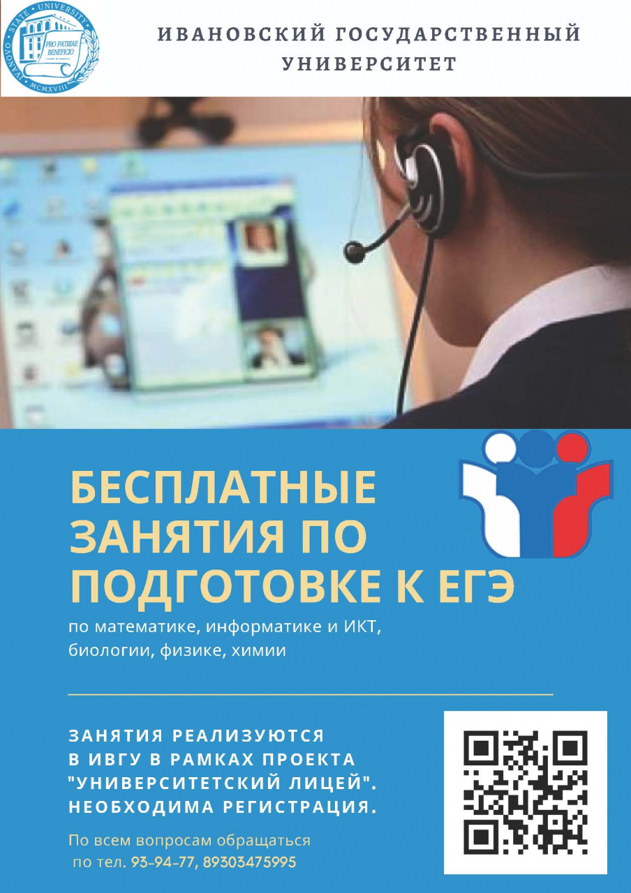 Бесплатные занятия по подготовке к ЕГЭ по математике, информатике и ИКТ, биологии, физике, химии реализуются в ИвГУ в рамках проекта «Университетский лицей».
