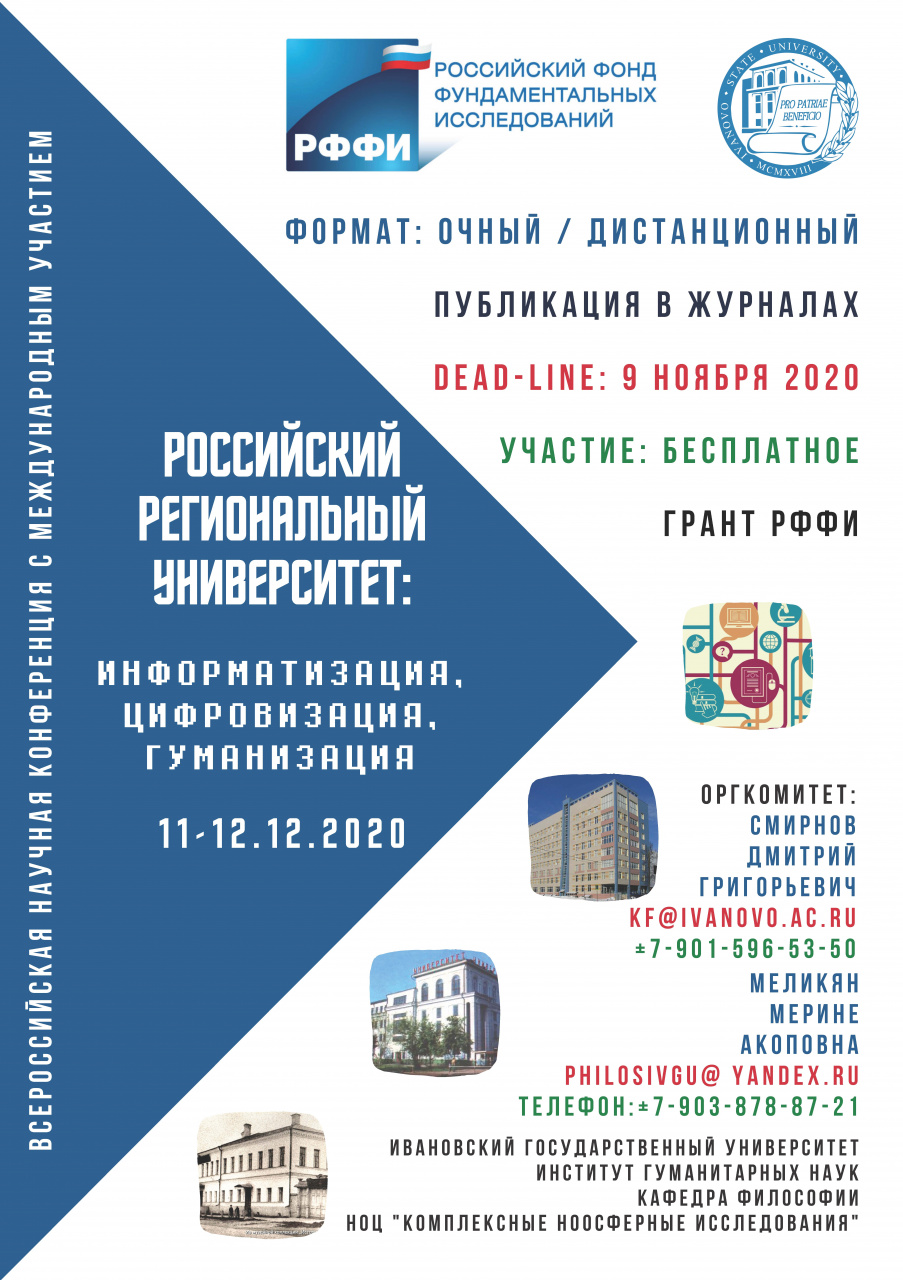 Прием заявок и материалов к публикации на конференцию «Российский региональный университет: информатизация, цифровизация, гуманизация», которая состоится 11–12 декабря 2020 г., продлен до 9 ноября 2020 г.