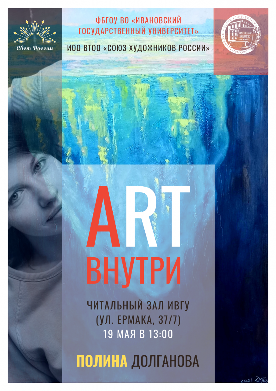 19 мая в 13:00 в читальном зале 1-го корпуса ИвГУ (ул. Ермака, д. 37/7) состоится открытие персональной выставки картин Полины Долгановой «Art ВНУТРИ».