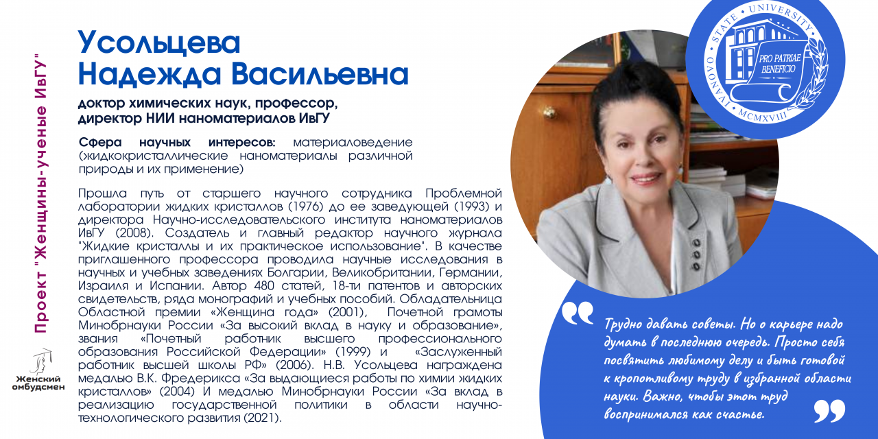 Сегодня мы хотим рассказать о пятнадцати женщинах-ученых ИвГУ, которые возглавляют институты, лаборатории и научно-образовательные центры, совершают научные открытия, преподают и меняют наши представления не только о мире вокруг, но и об академической карьере. Эти замечательные женщины самим своим существованием опровергают никак не изживаемые до конца и, что греха таить, порой просто репрессивные гендерные стереотипы.