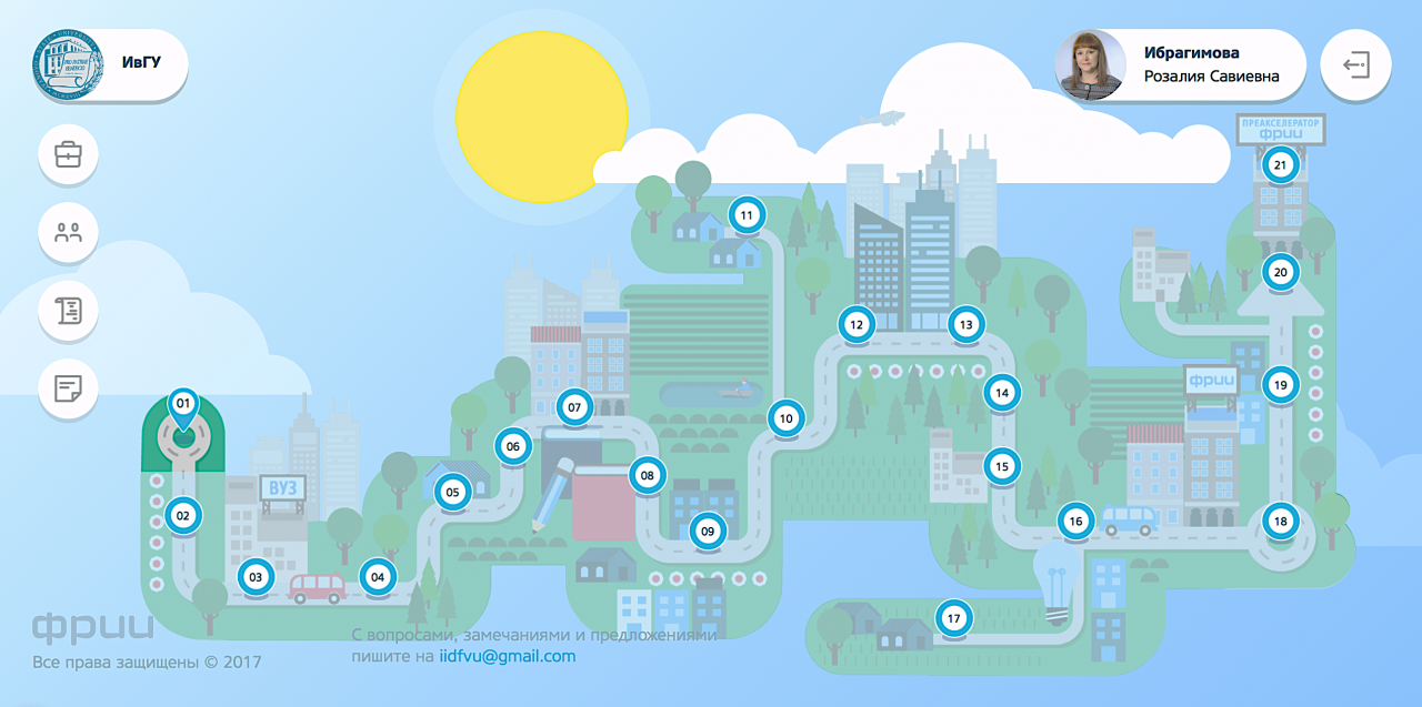 Платформа обучения «Курс интернет-предпринимательство», разработанная ФРИИ (Фондом развития интернет-инициатив) и предоставленная ИвГУ в соответствии с договором о сотрудничестве