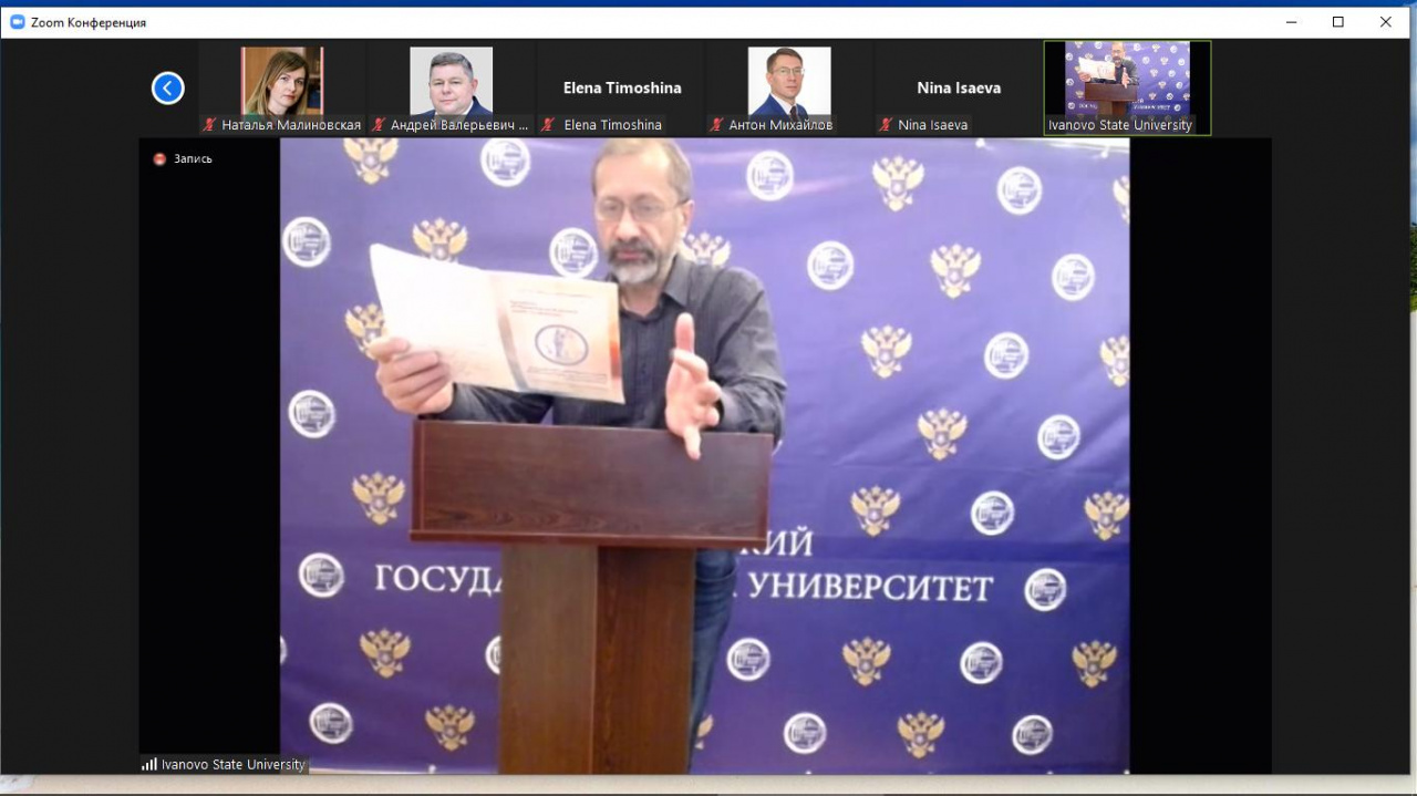 Модератором оба дня работы конференции был доцент Евгений Леонидович Поцелуев, чья деятельность в этом качестве получила высокую оценку его коллег. Он же как председатель оргкомитета конференции выступил с заключительным словом, подведением итогов ее работы. Было сделано 18 докладов, которые могли бы украсить любую научную конференцию в России и ближнем зарубежье. Очень позитивную оценку ходу, содержанию конференции дали многие ее участники, в том числе и в чате. Все выступления вызвали интерес и вопросы слушателей, реплики и комментарии как устной, так и письменной форме (обсуждение активно велось и в чате). Все докладчики получат сертификаты или их сканы. За верность и преданность идеям нашей конференции, за вклад в развитие юридической науки многие иногородние участники (и два почетных профессора ИвГУ Б. Бауринг и Б. Мелкевик) получили благодарность от ректора ИвГУ А.А. Малыгина и проректора И.Н. Смирновой, а Н.В. Исаева, О. В. Соколова, О.В. Кузьмина и Е.Л. Поцелуев – почетные грамоты.