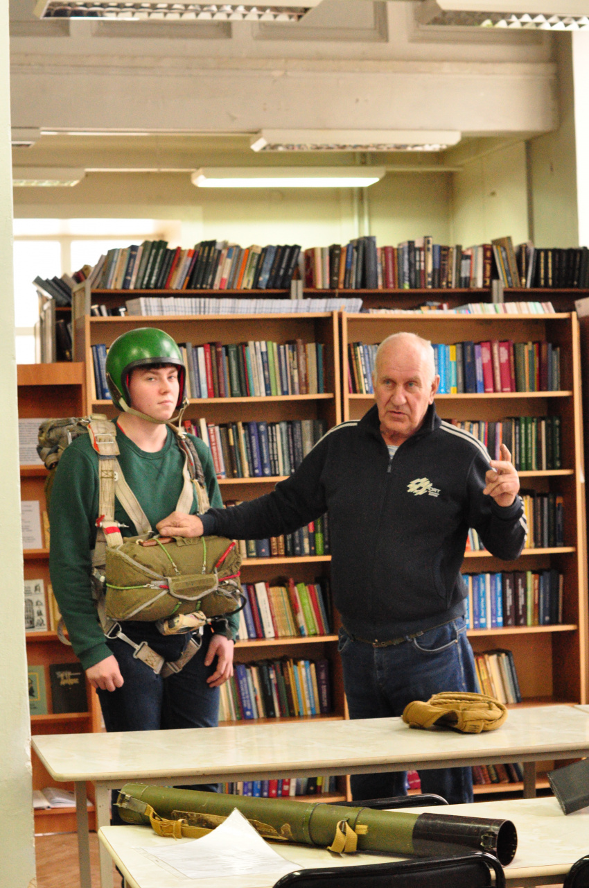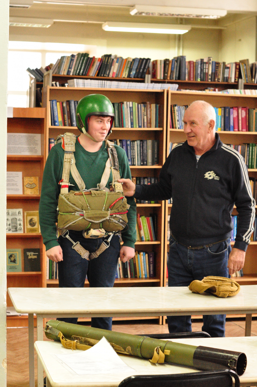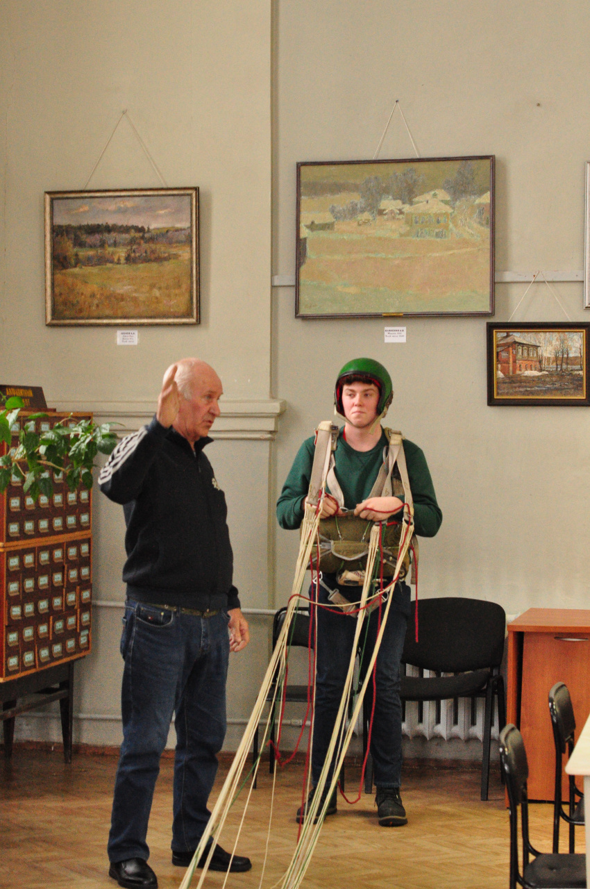 Мастер спорта СССР Александр Николаевич Бочков, на счету которого более 4500 прыжков с парашютом, продемонстрировал студентам устройство парашютной системы и пригласил на занятия в студенческий парашютный кружок, который в ближайшее время откроется в ИвГУ. Записаться в парашютный кружок ИвГУ можно, пройдя по ссылке.