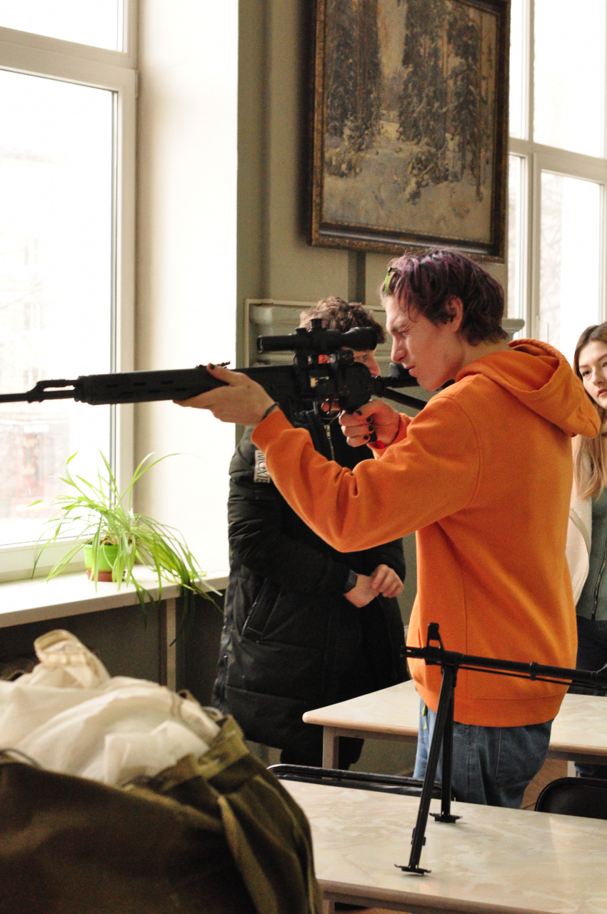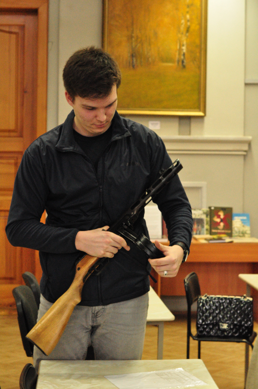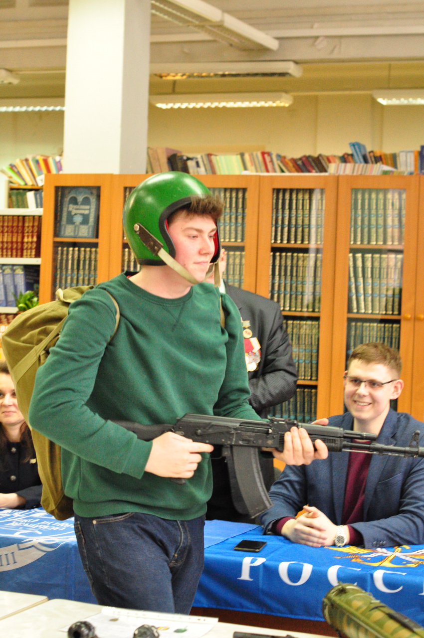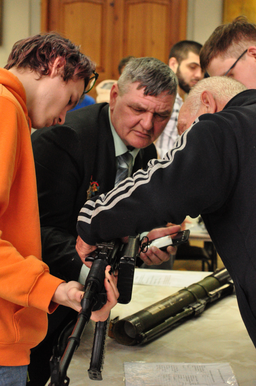 На мероприятии выступил Андрей Витальевич Скворцов – председатель Ивановского отделения Всероссийской общественной организации «Боевое братство». Он поделился своими воспоминаниями о трудностях и преградах, которые ему пришлось преодолеть во время Афганской войны, а также провел мастер-класс по разборке / сборке автомата Калашникова. Каждый желающий смог ознакомиться с выставкой оружия и научиться разбирать и собирать самый известный в мире автомат.