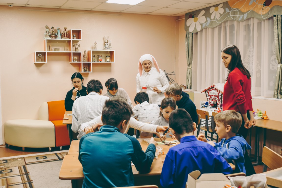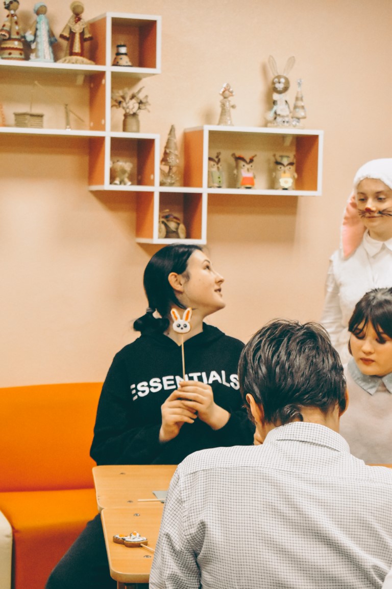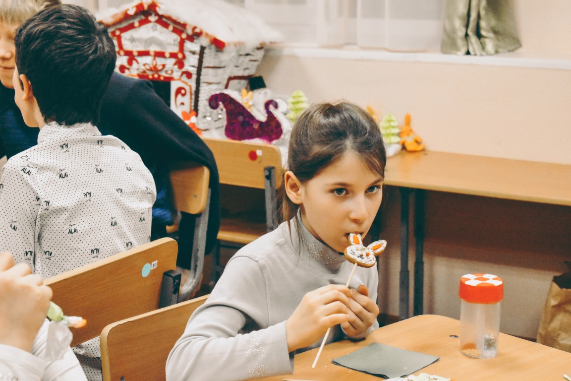 Студенты провели для ребят спортивно-развлекательную программу на свежем воздухе, а затем пригласили на мастер-класс по росписи имбирных пряников. Дети с большим интересом расписывали пряники в форме зайчика и елочки.